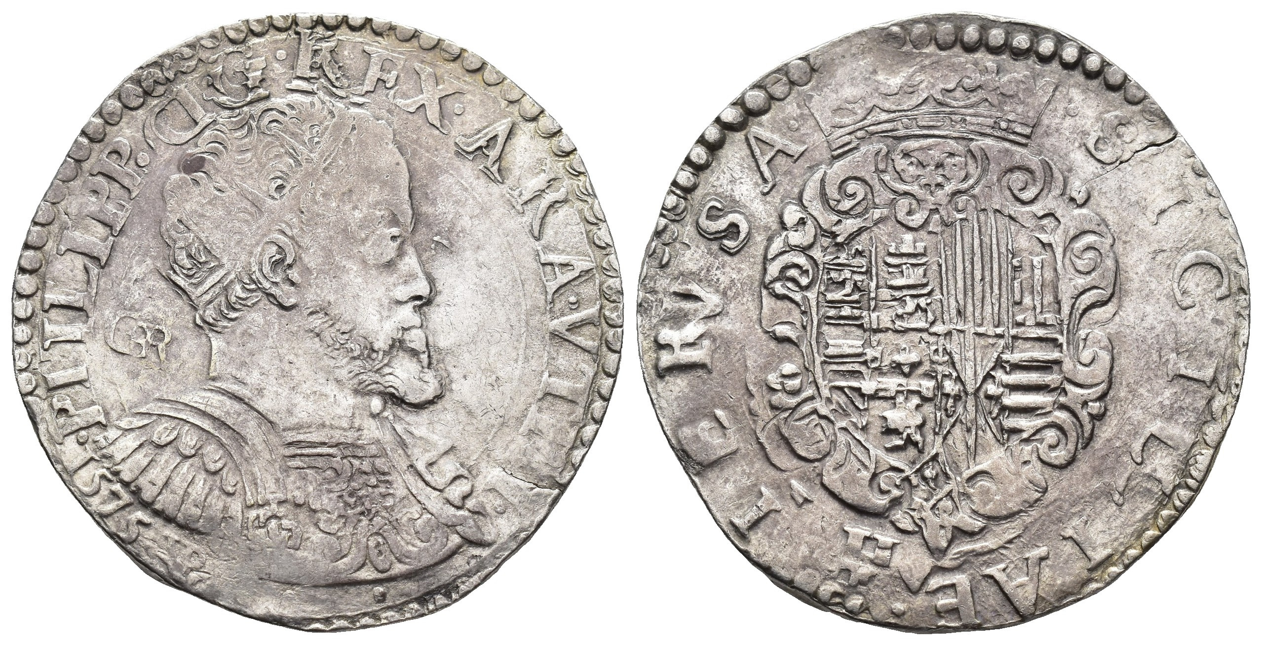 FELIPE II. 1/2 ducado. 1575. Nápoles. GR-DG, D invertida. AR 14,88 g. 34,7 mm. Olivares-112. MBC/MBC+.