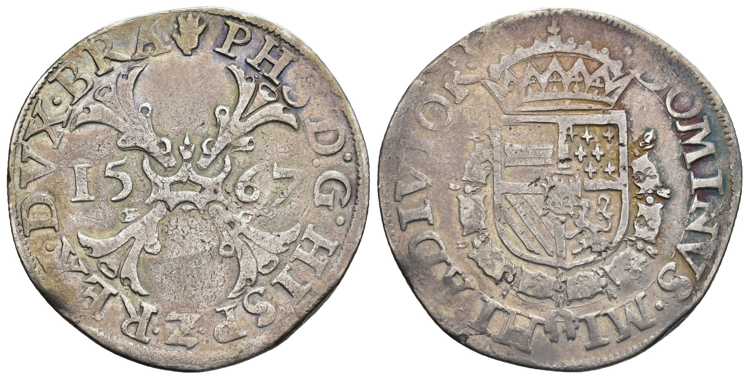 FELIPE II. 1/2 escudo. 1567. Amberes. AR 14,35 g. 34,6 mm. Vanhoudt-291.AN. MBC-.