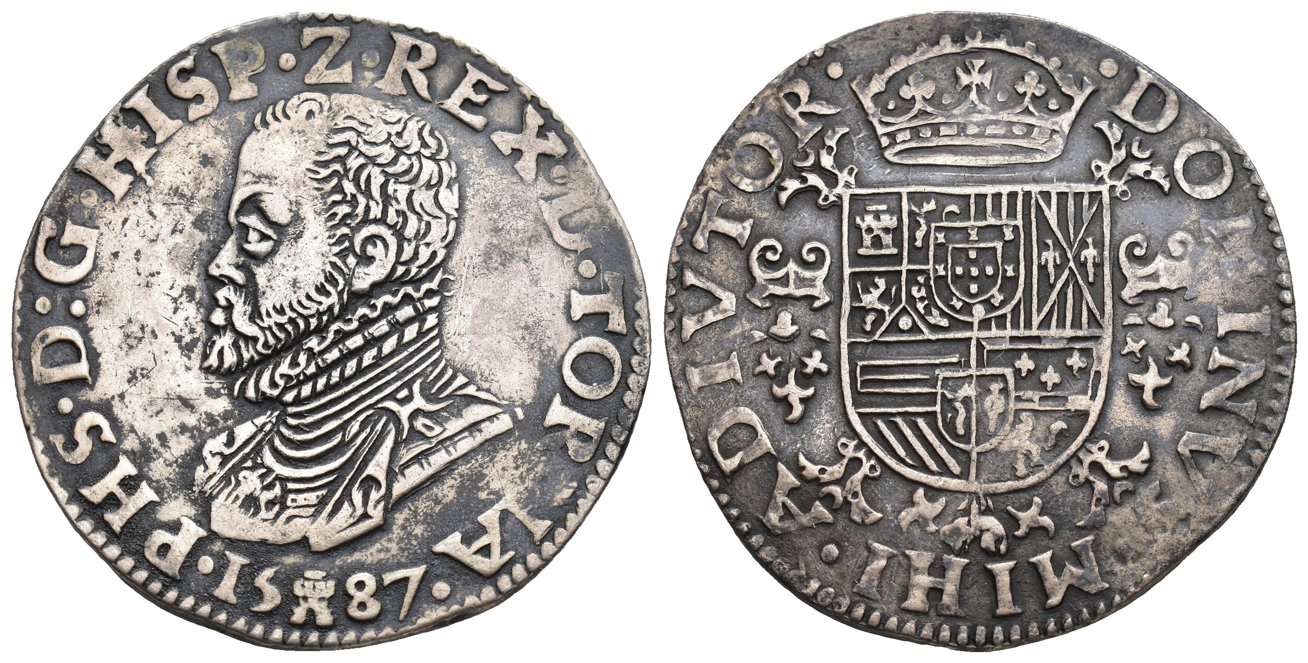 FELIPE II. 1/2 escudo. 1587. Tournai. AR 16,95 g. 25,8 mm. Vanhoudt-364.TO. Leves oxidaciones. MBC.
