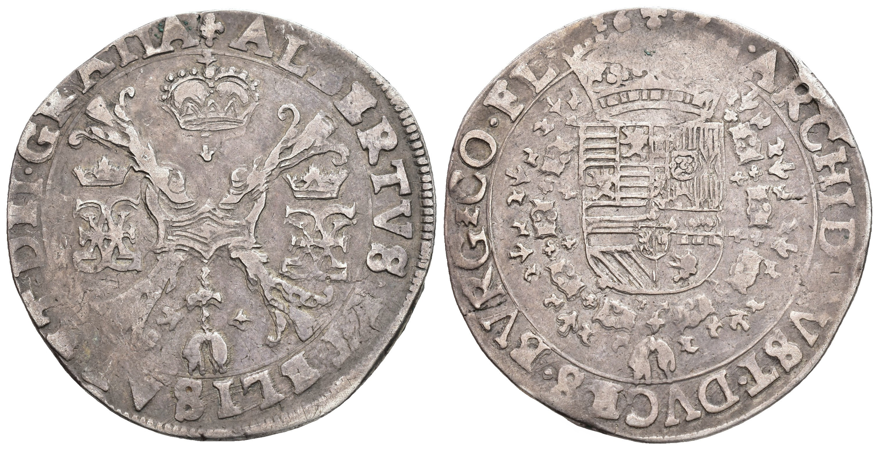 ALBERTO E ISABEL. Patagón. 1617. Brujas. SF. AR 27,64 g. 41,3 mm. Vanhoudt-619.BG. MBC.