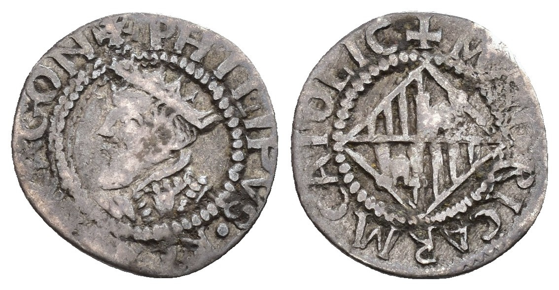 FELIPE III. 1/2 real. S.F. Mallorca. AR 1,19 g. 14,7 mm. AC-387. BC+/MBC-. Muy escasa.