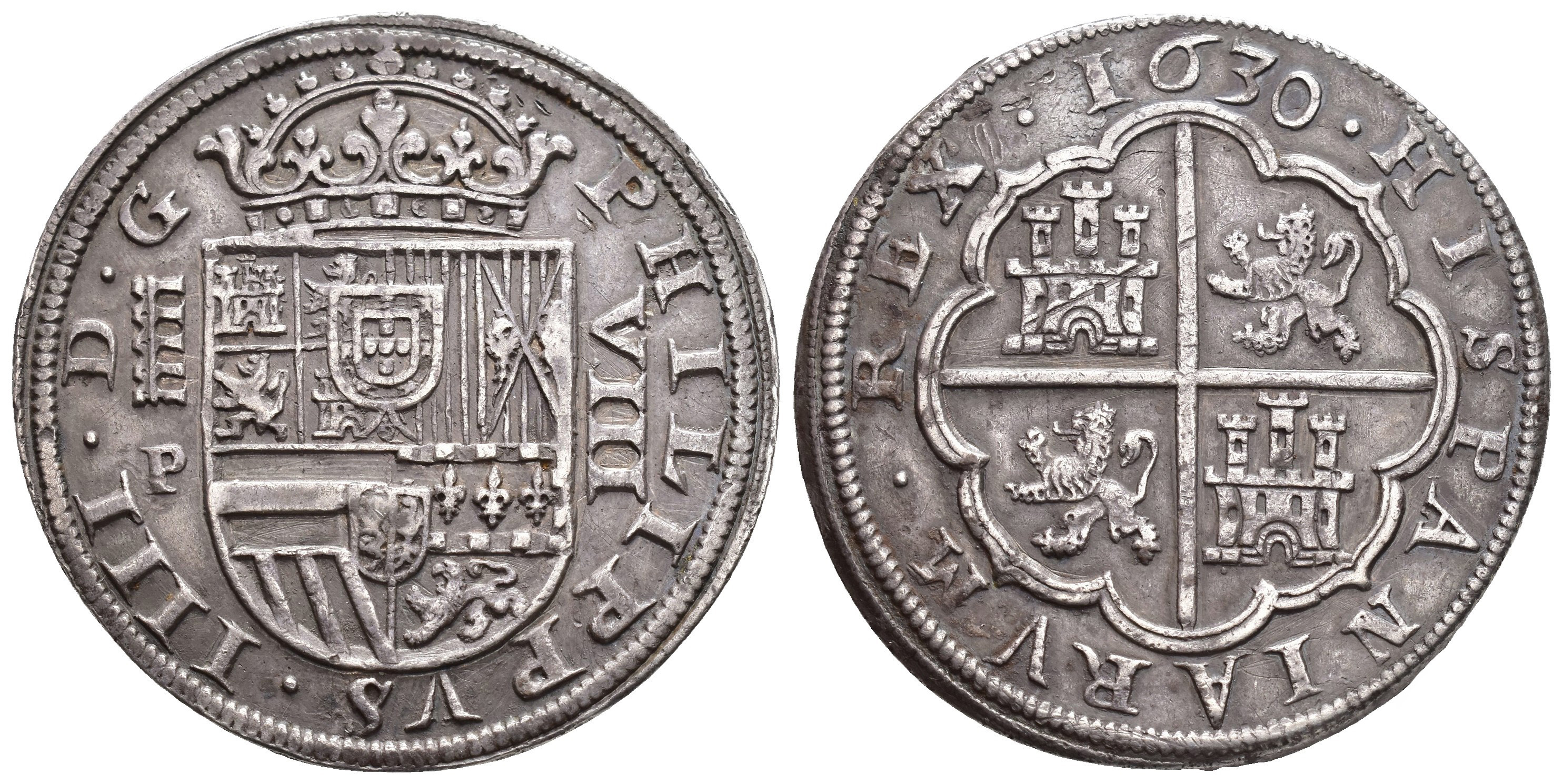 FELIPE IV. 8 reales. 1630. Segovia. P. AR 27,36 g. 40,3 mm. AC-1588. Raya en rev. MBC+/MBC.