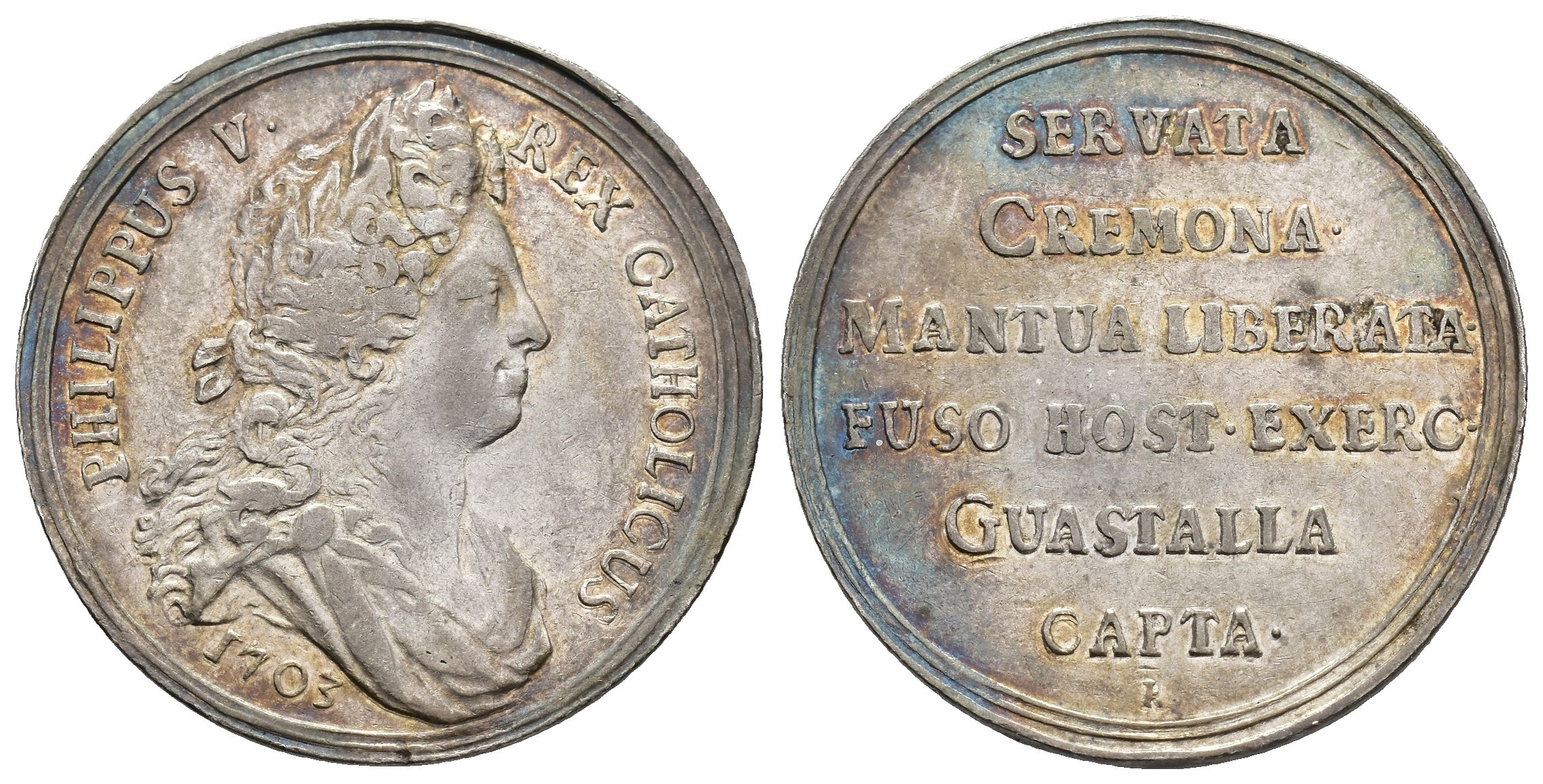 FELIPE V. Medalla. 1703. Victorias en Italia. AR 7,99 g. 30,9 mm. VQ-13992; MHE-138. R.B.O. MBC+.