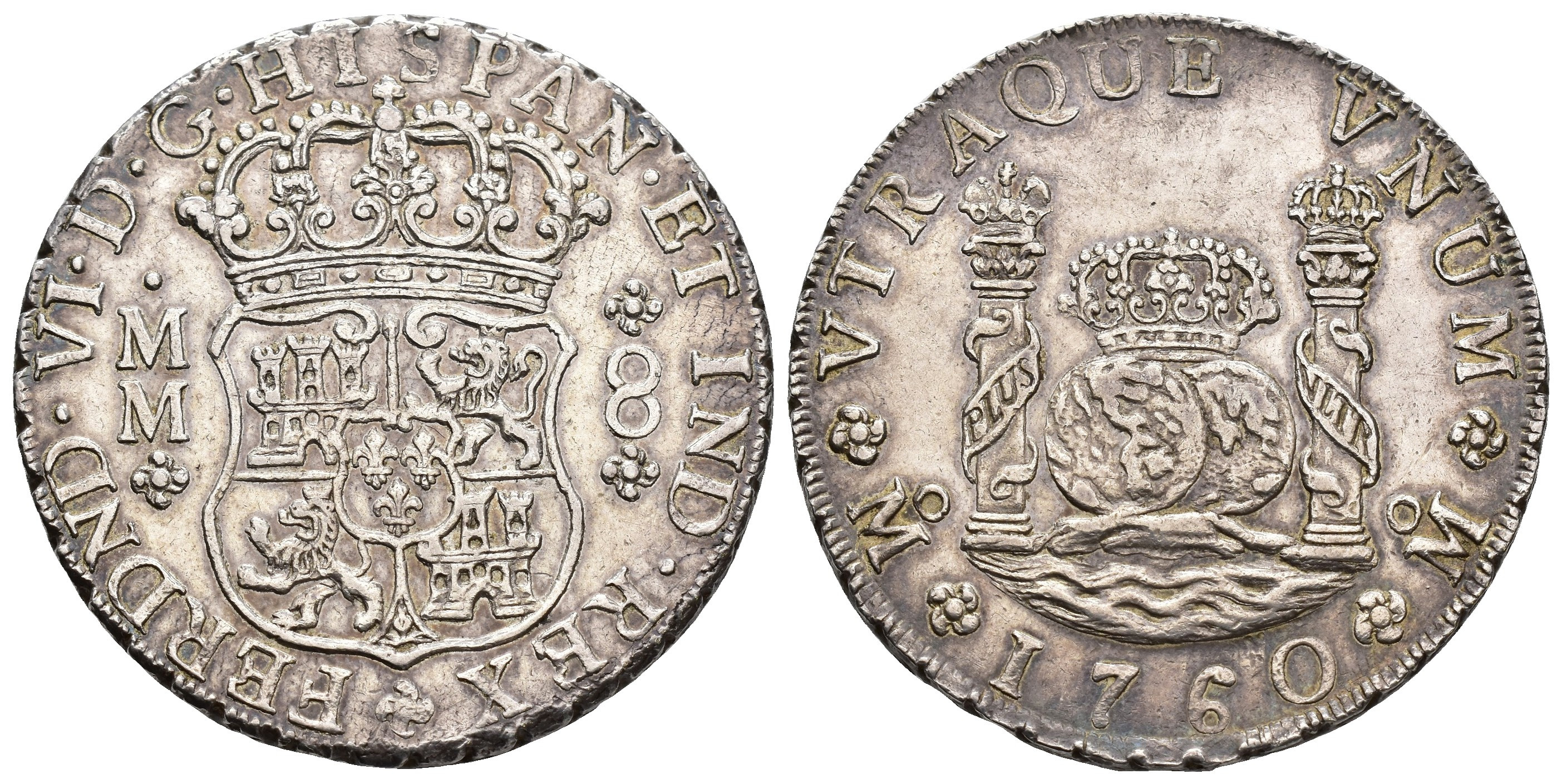 FERNANDO VI. 8 reales. 1760. México. MM. AR 26,97 g. 37,9 mm. VI-371; AC-497. EBC.