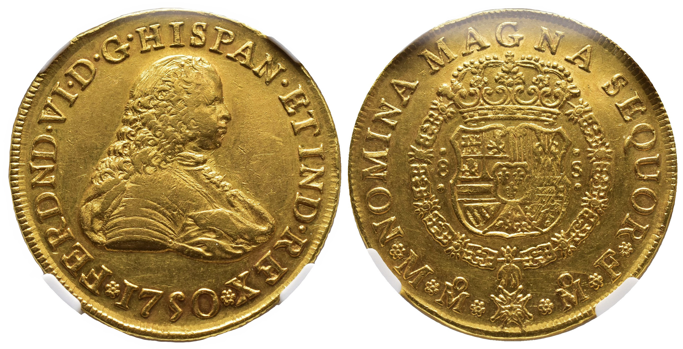 FERNANDO VI. 8 escudos. 1750. México. MF. AU g. mm. VI-609; AC-784. Encapsulada NGC AU DETAILS.