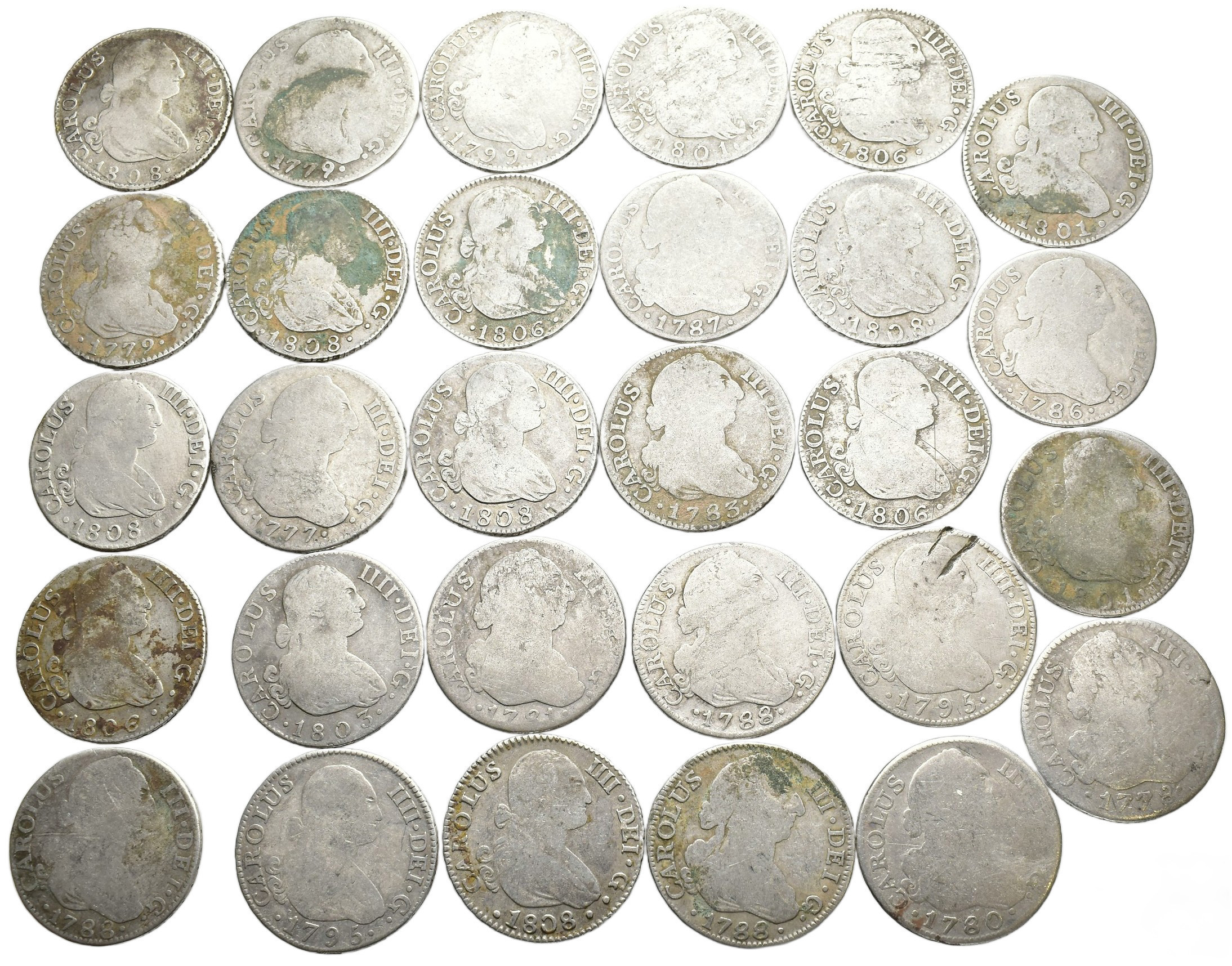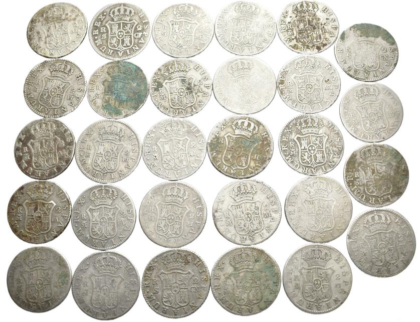 CARLOS III. Lote de 29 piezas de 2 reales. RC/BC+.