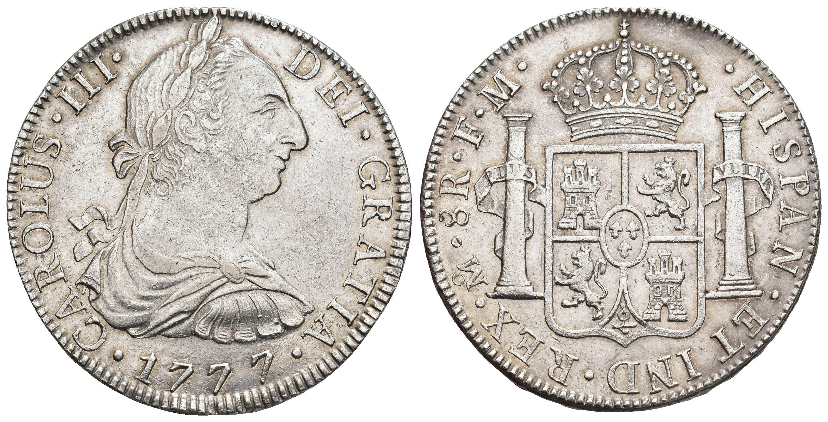CARLOS III. 8 reales. 1777. México. FM. AR 26,97 g. 38,5 mm. VI-938; AC-1112. EBC-/MBC+.