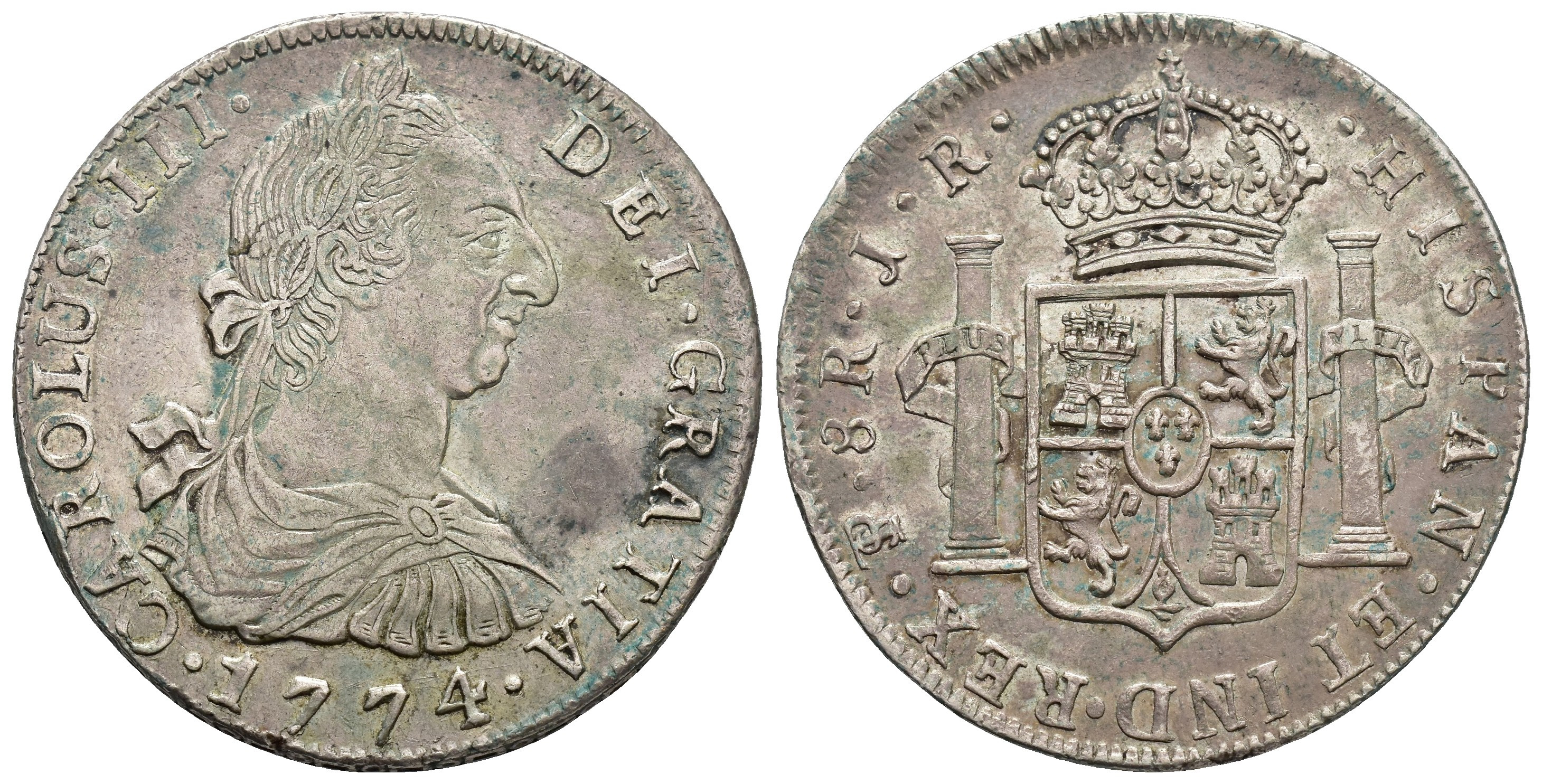 CARLOS III. 8 reales. 1774. Potosí. JR. AR 26,87 g. 39,9 mm. VI-980; AC-1170. MBC+.