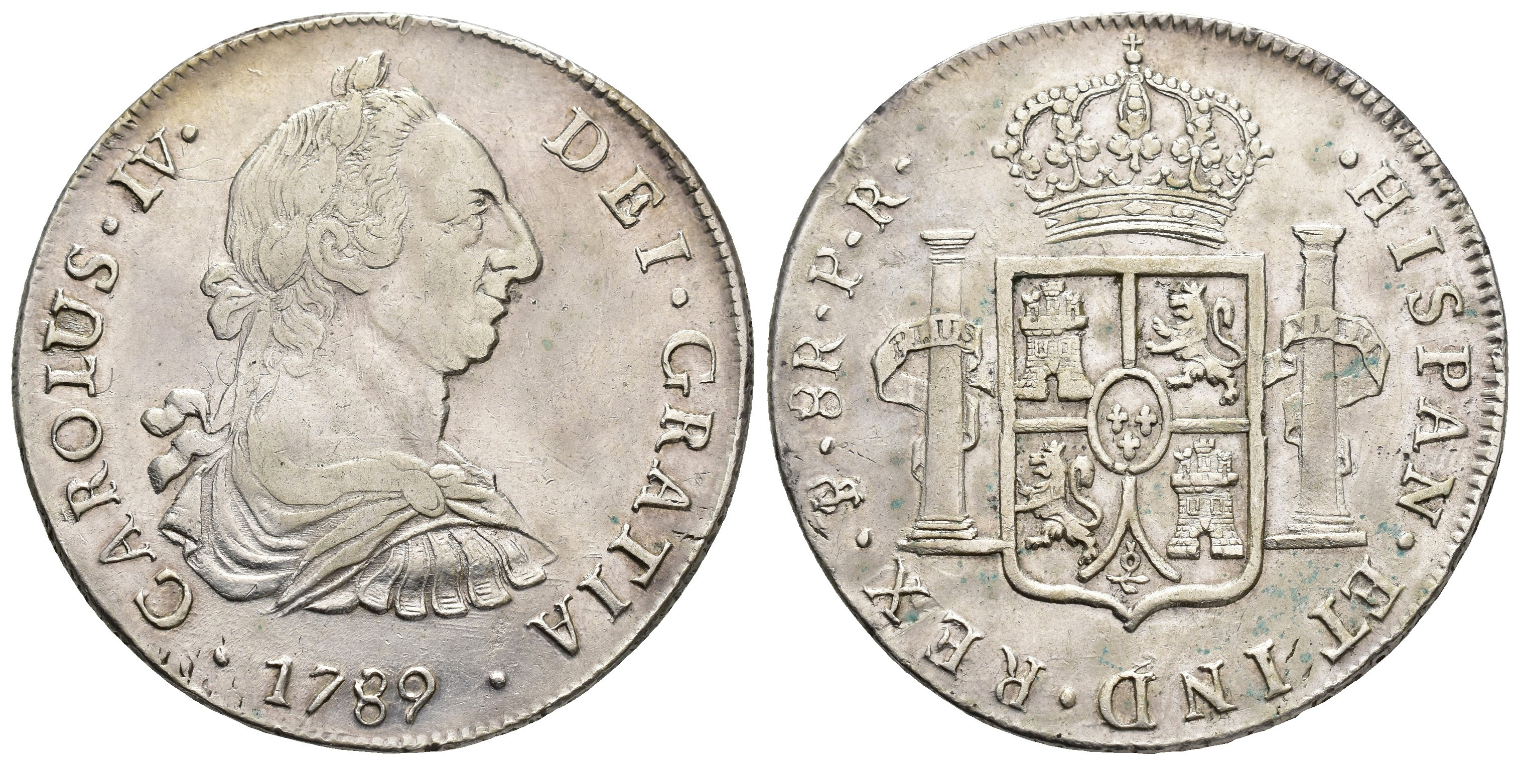 CARLOS IV. 8 reales. 1789. Potosí. PR. AR 26,98 g. 41,3 mm. VI-808; AC-989. Pequeñas marcas. MBC+.