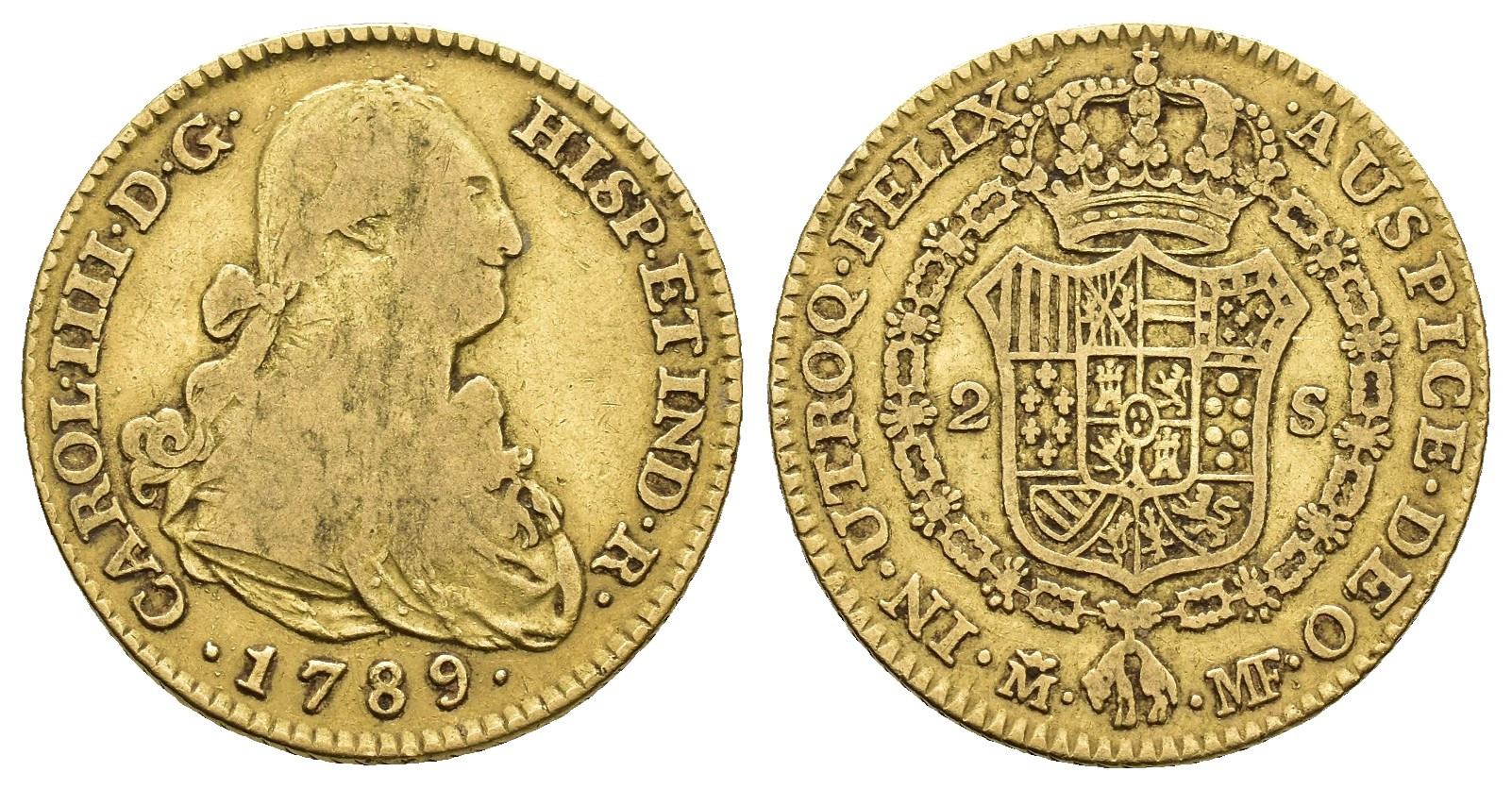 CARLOS IV. 2 escudos. 1789. Madrid. MF. AU 6,64 g. 22 mm. VI-1039; AC-1291. MBC-/MBC.