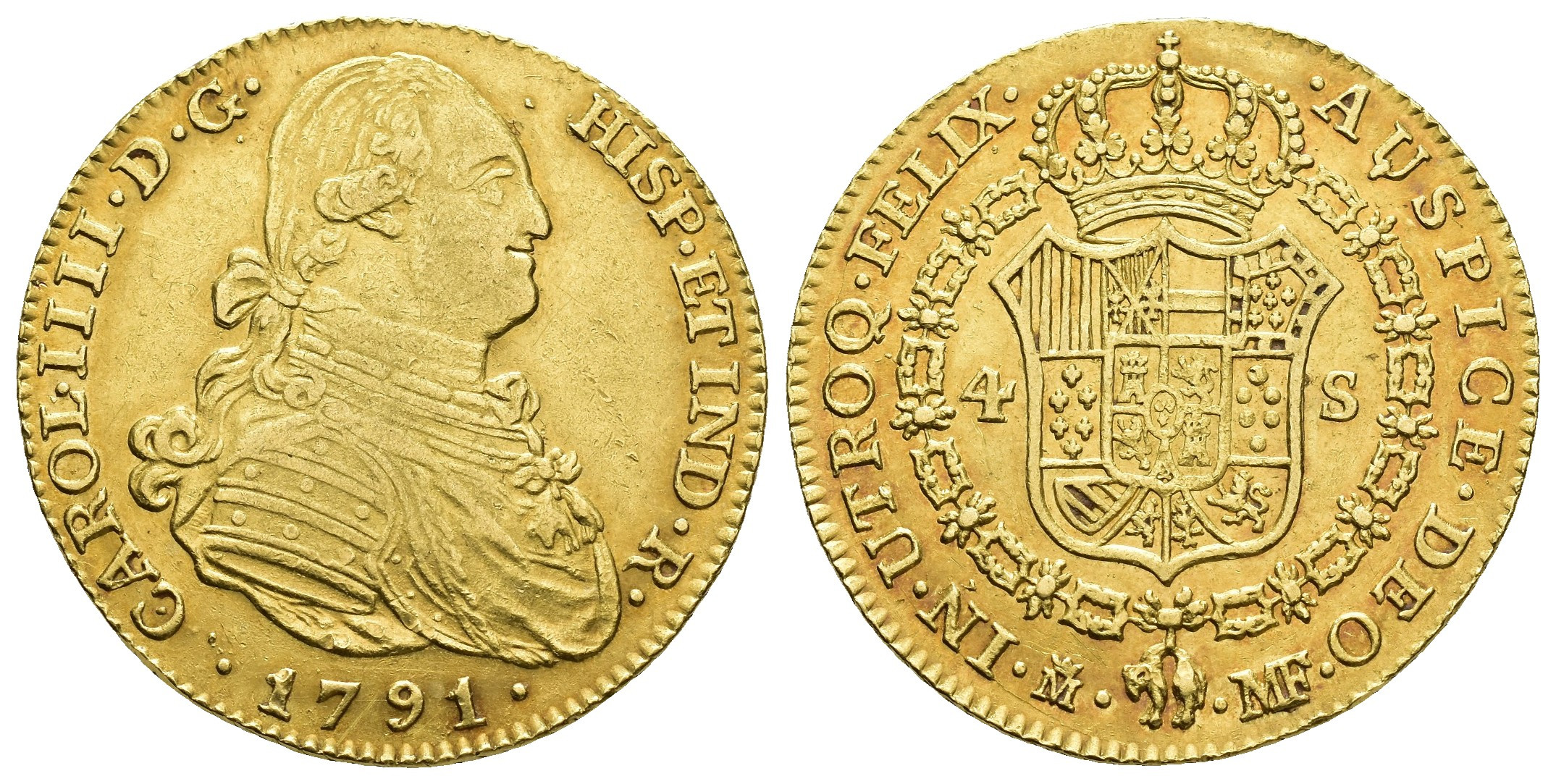 CARLOS IV. 4 escudos. 1791. Madrid. MF. AU 13,53 g. 28,7 mm. VI-1195; AC-1474. MBC+/EBC-.