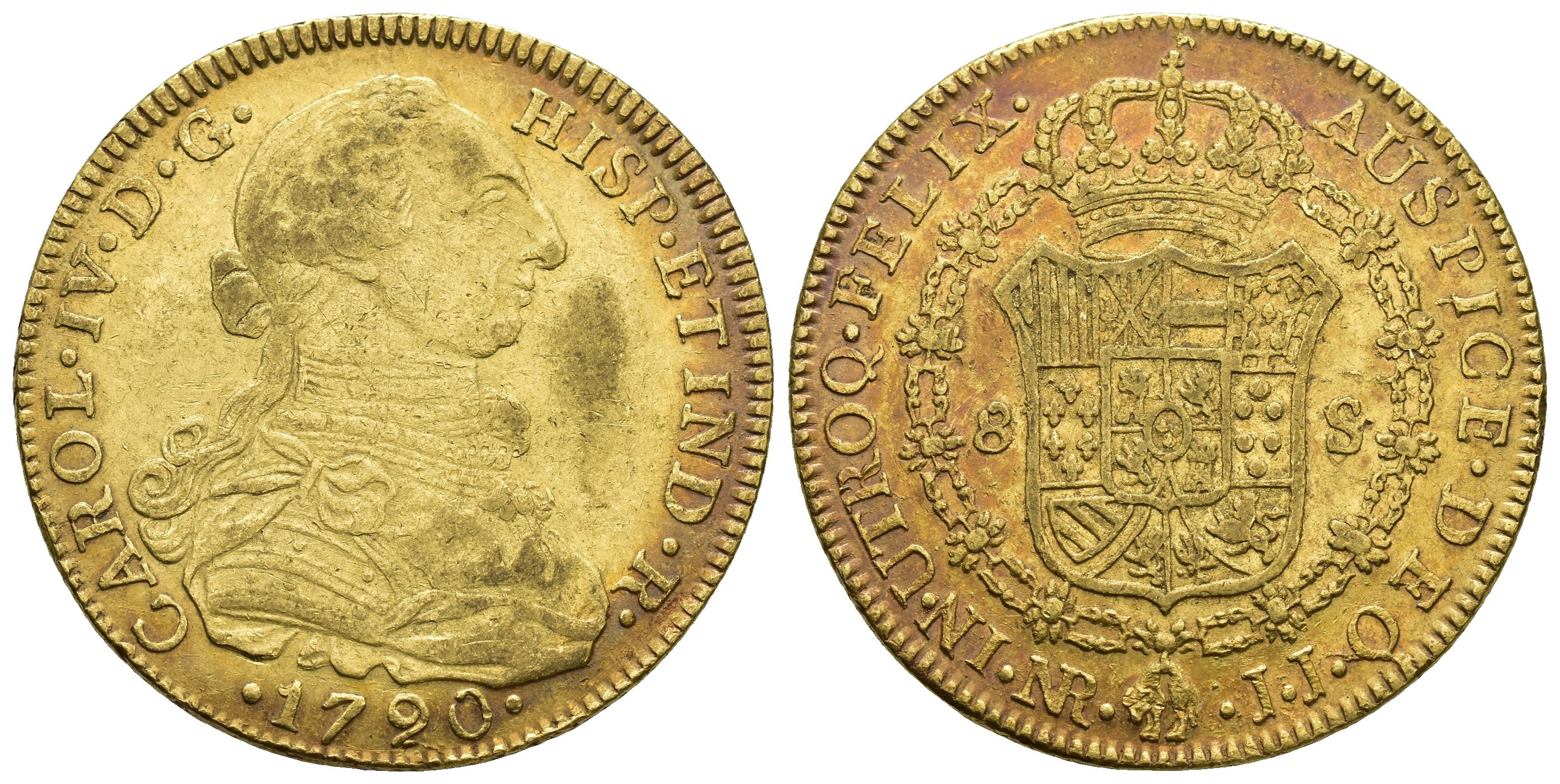 CARLOS IV. 8 escudos. 1790. Nuevo Reino. JJ. AU 27,01 g. 37,2 mm. VI-1347; AC-1717. MBC-.