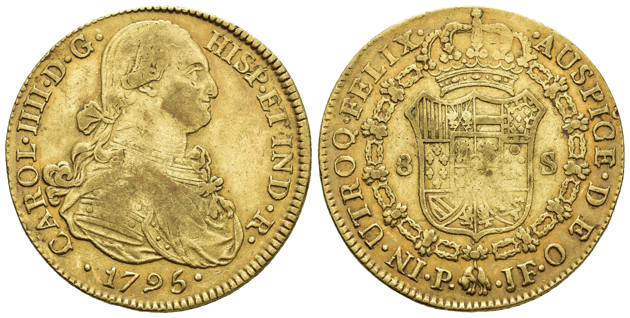 CARLOS IV. 8 escudos. 1795. Popayán. JF. AU 27,02 g. 35,8 mm. VI-1375; AC-1667. MBC-/BC+.