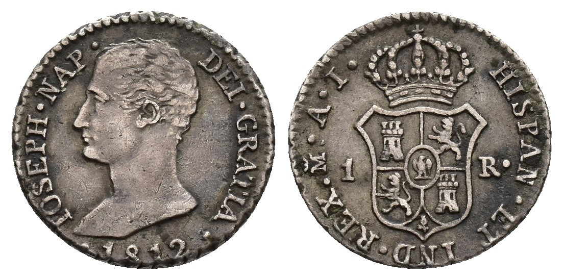JOSÉ I BONAPARTE. Real. 1812. Madrid. AI. AR 1,46 g. 14,1 mm. VI-6; AC-7. MBC. Escasa.