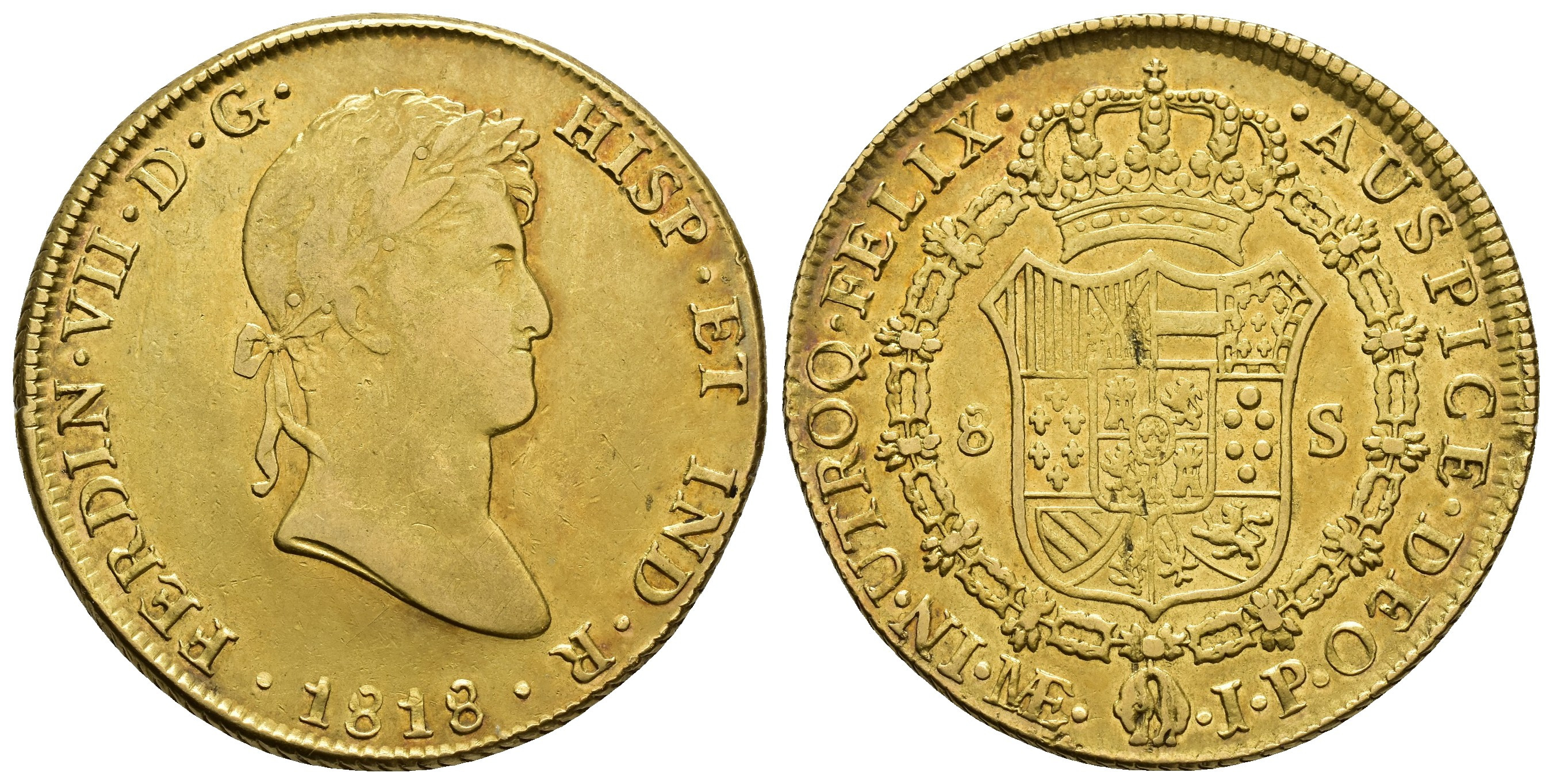 FERNANDO VII. 8 escudos. 1818. Lima. JP. AU 27,06 g. 36,9 mm. VI-1470; AC-1765. MBC/MBC+.