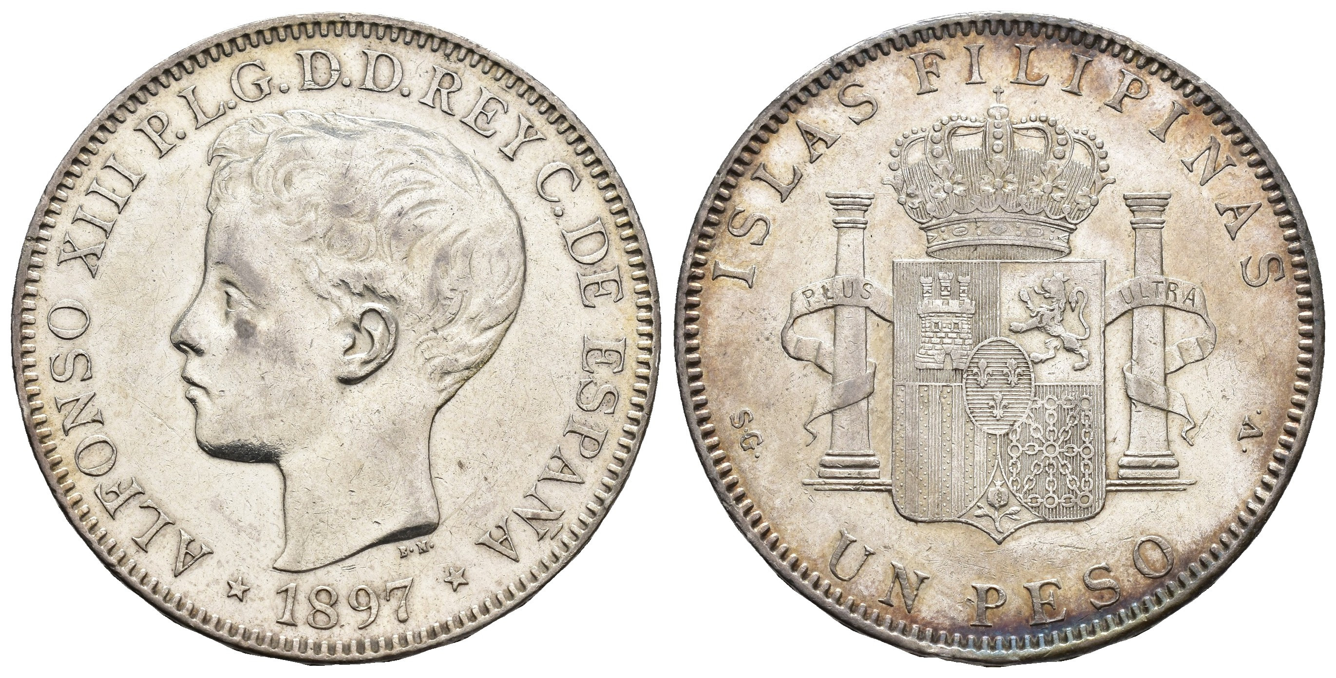 ALFONSO XIII. Peso. 1897. Manila. AR 25,09 g. 37,1 mm. VII-192; AC-122. Abrillantada. MBC+.