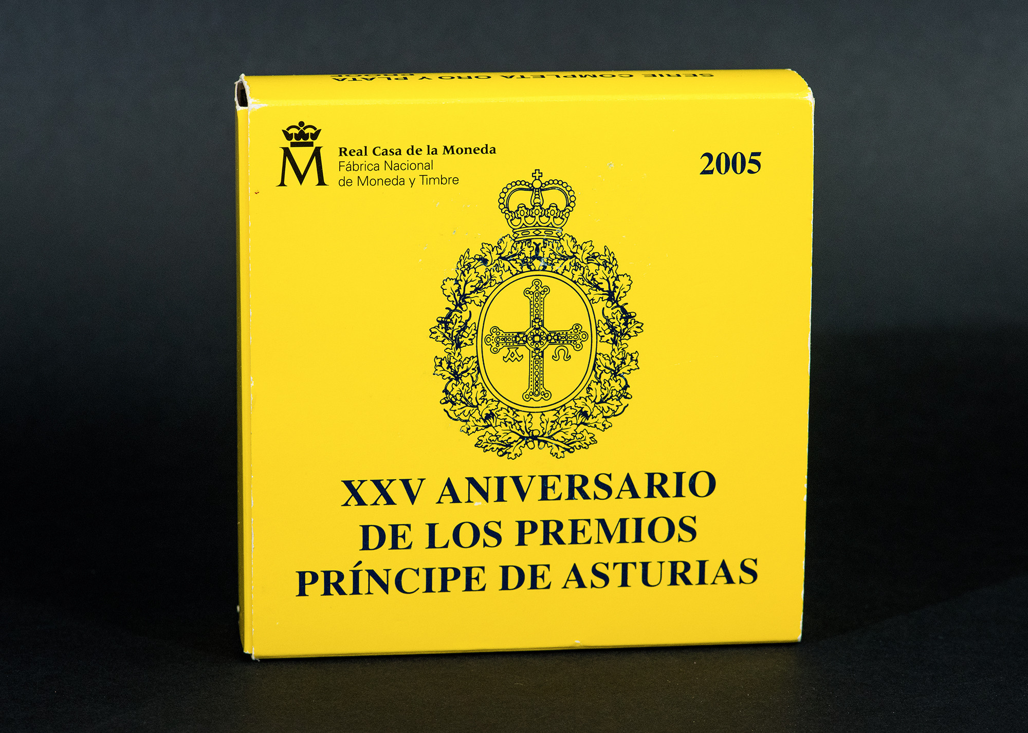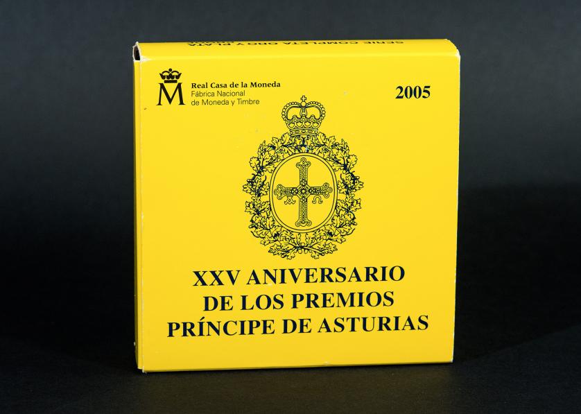 JUAN CARLOS I. Estuche FNMT. XXV Aniversario de los Premios Príncipe de Asturias. 2005. 2 piezas: 200 euros (AU 13,5 g) y 10 euros (AR 27 g). Proof. En su estuche y con certificado.