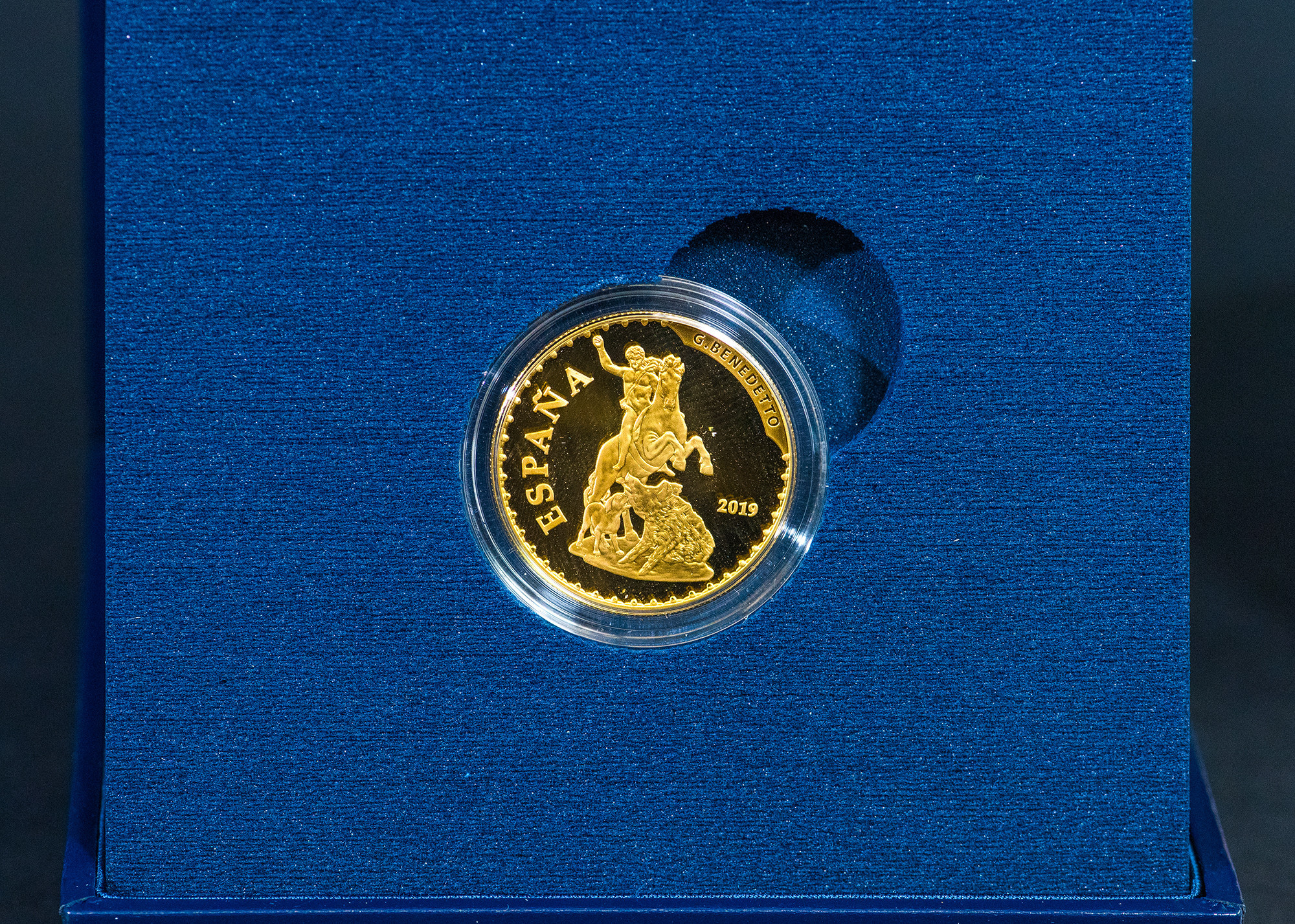 FELIPE VI. Bicentenario del Museo del Prado. La caza de Meleagro. 100 euros conmemorativos (AU 6,75 g). FNMT. Proof. En su estuche y con certificado.