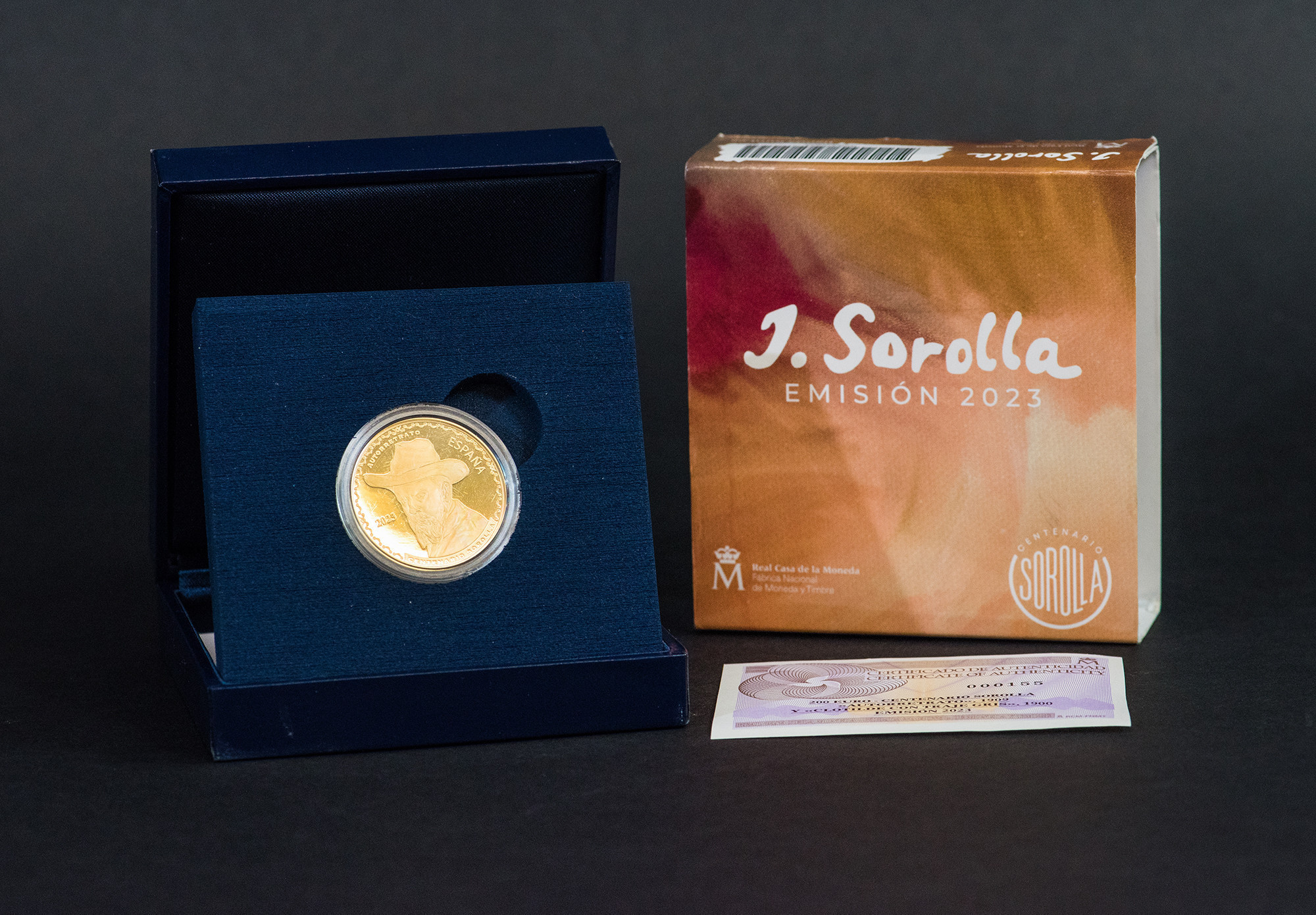 FELIPE VI. Joaquín Sorolla. 2023. 200 euros conmemorativos (AU 13,5 g). FNMT. Proof. En su estuche y con certificado.