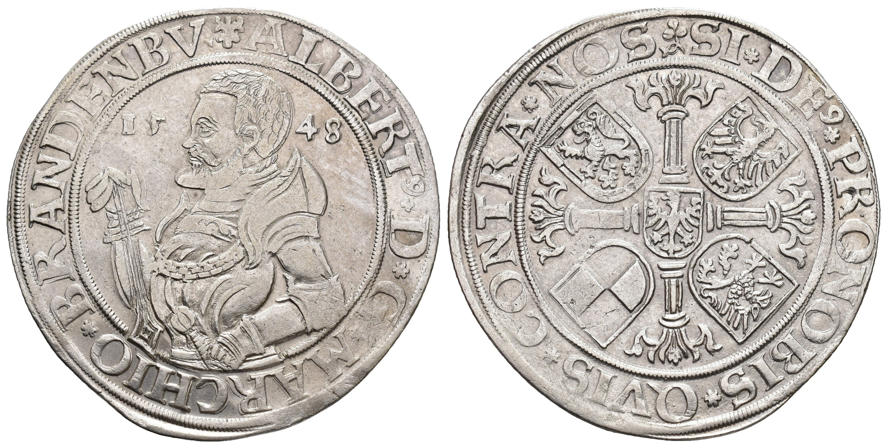 MONEDA EXTRANJERA. ALEMANIA Y ESTADOS ALEMANES. BRANDEBURGO. Alberto el Joven. Tálero. 1548. AR 28,61 g. 41,4 mm. Dav.-8969. MBC/MBC+.