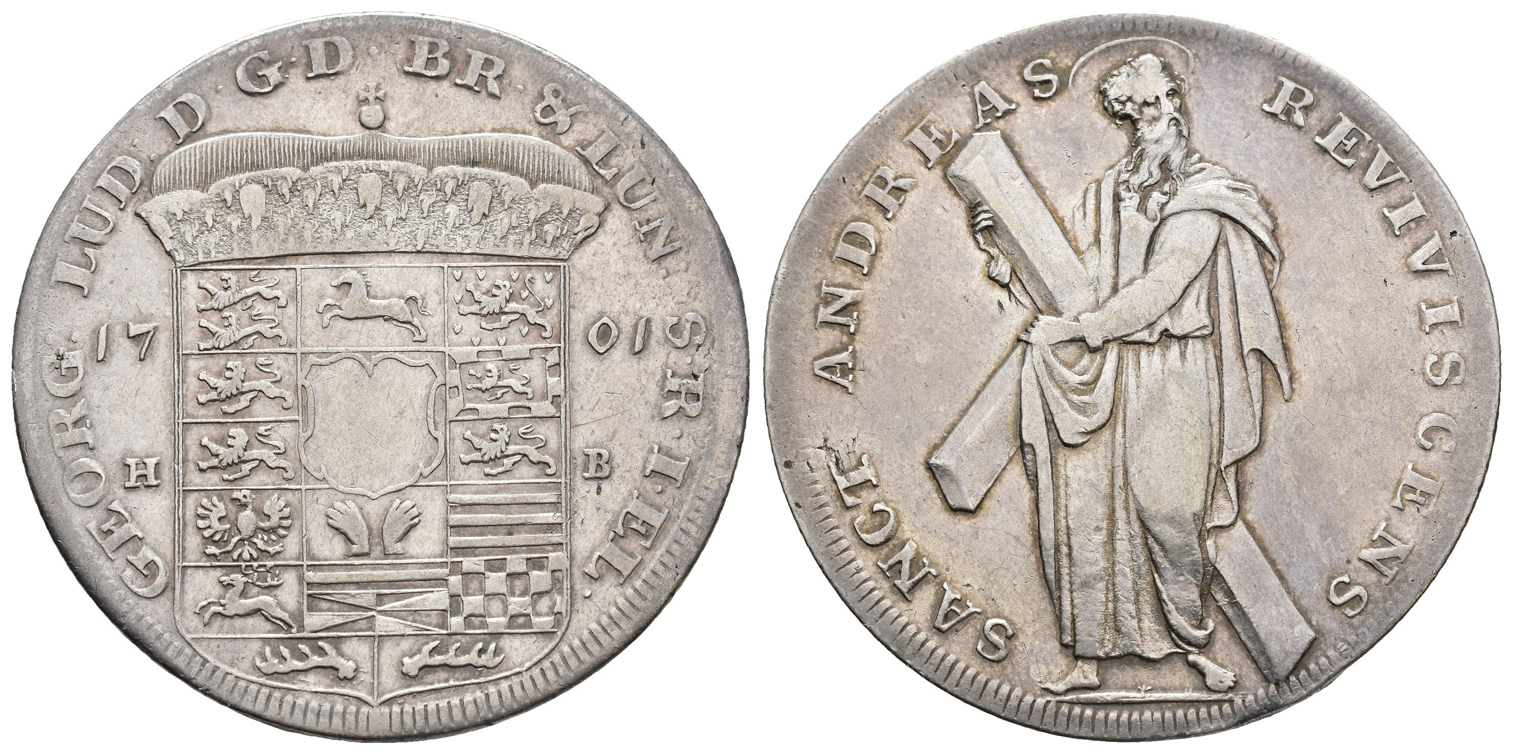 MONEDA EXTRANJERA. ALEMANIA Y ESTADOS ALEMANES. BRAUNSCHWEIG-CALENBERG. Jorge Luis. Tálero. 1701. HB. AR 29,07 g. 40,4 mm. Dav.-2061. MBC.