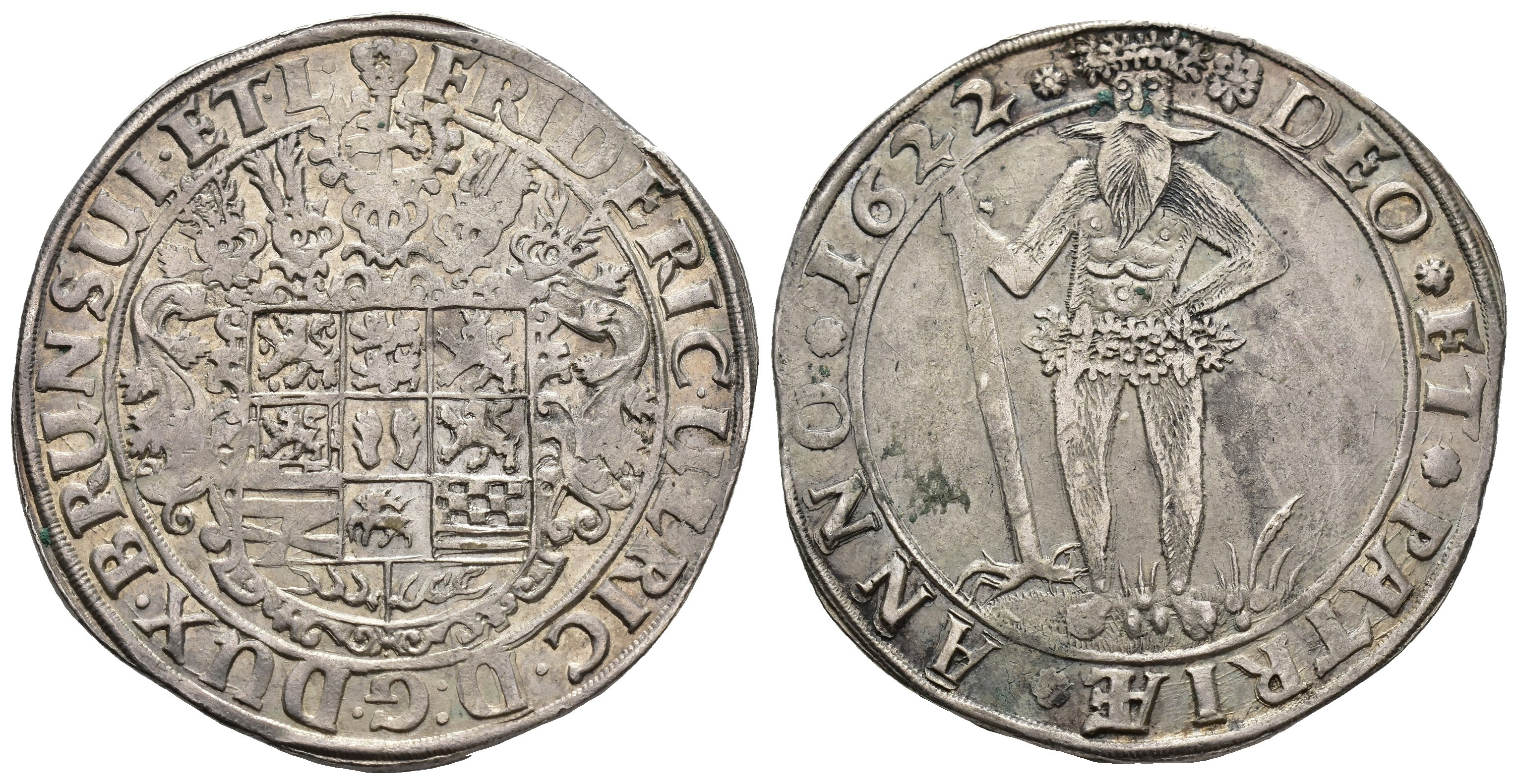 MONEDA EXTRANJERA. ALEMANIA Y ESTADOS ALEMANES. BRUNSWICK-WOLFENBUTTEL. Federico Ulrico. Tálero. 1622. AR 28,26 g. 42,2 mm. Dav.-6306. MBC/MBC+.