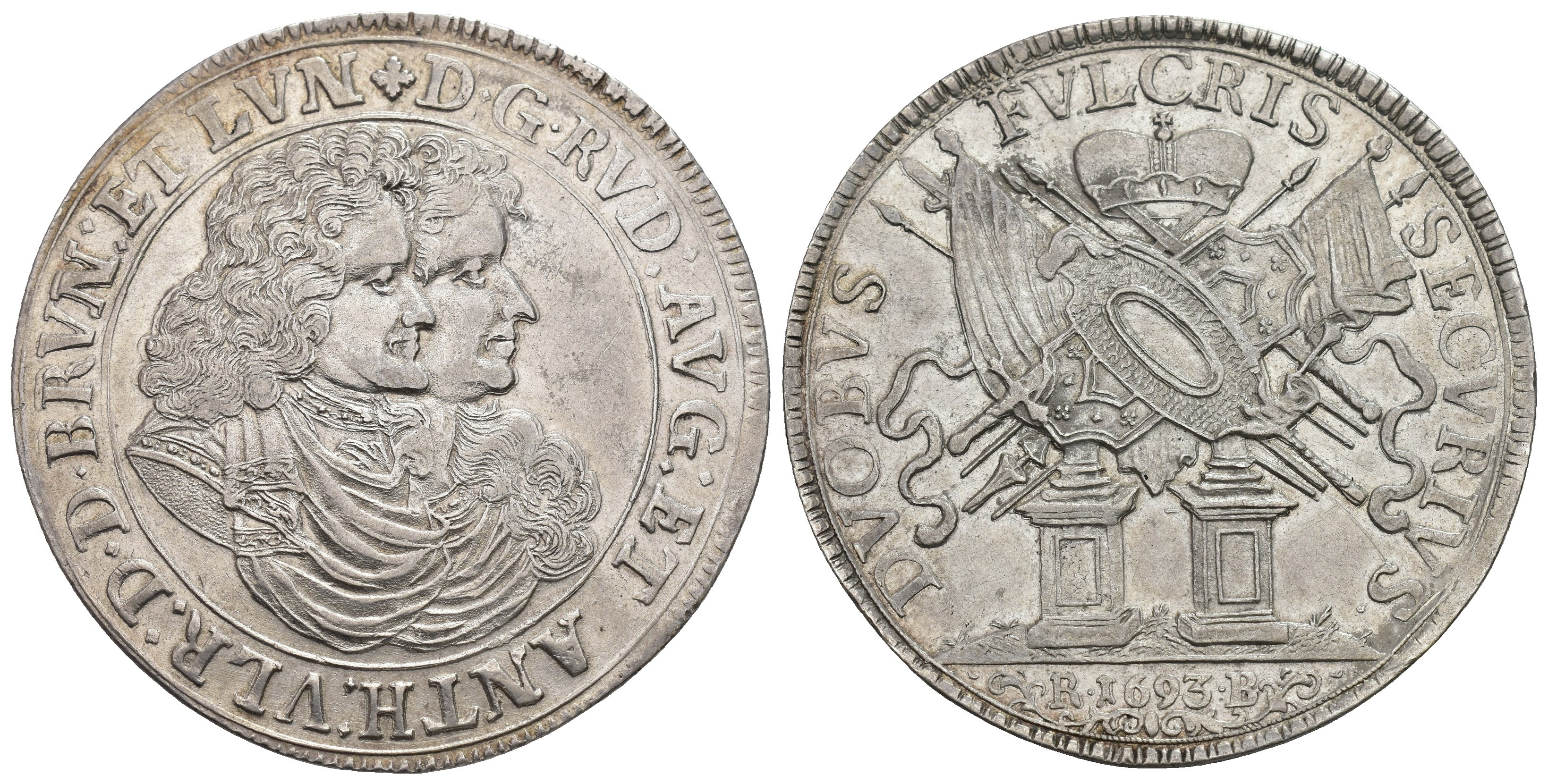 MONEDA EXTRANJERA. ALEMANIA Y ESTADOS ALEMANES. BRUNSWICK-WOLFENBUTTEL. Rodolfo Augusto y Anton Ulrico. Tálero. 1693. AR 29,06 g. 44,8 mm. Dav.-6395. MBC+/MBC-.