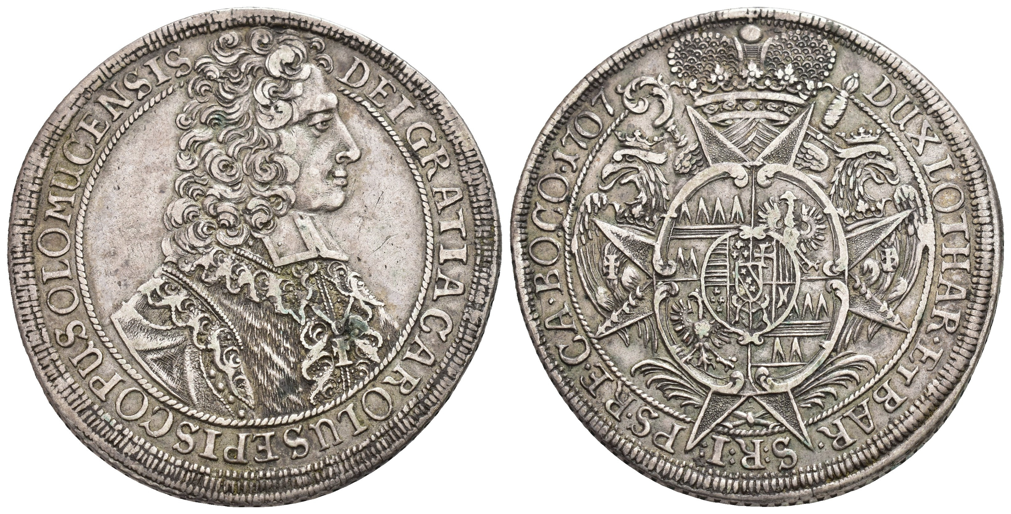 MONEDA EXTRANJERA. ALEMANIA Y ESTADOS ALEMANES. OLMUTZ. Carlos de Lorena. Tálero. 1707. AR 28,26 g. 45,4 mm. Dav.-1211. MBC+/MBC.