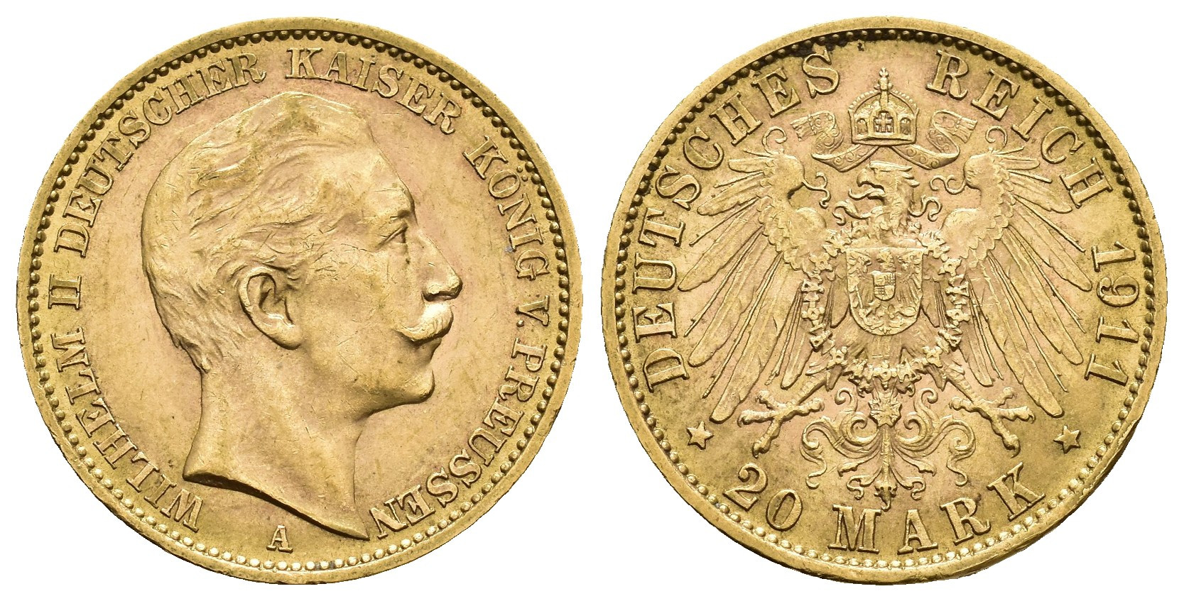 MONEDA EXTRANJERA. ALEMANIA Y ESTADOS ALEMANES. PRUSIA. Guillermo II. 20 marcos. 1911. AU 7,95 g. 22,3 mm. KM-521. EBC-.