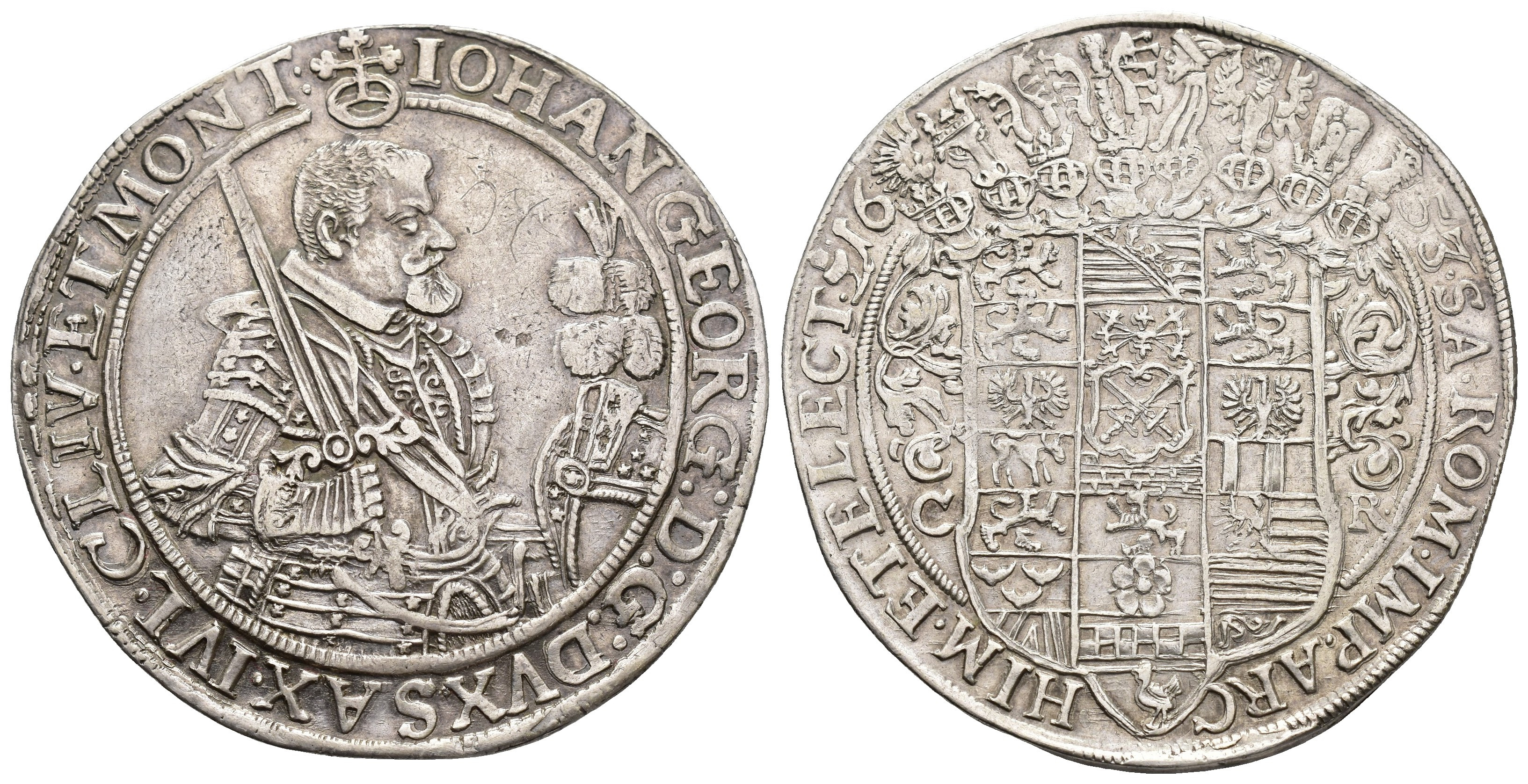 MONEDA EXTRANJERA. ALEMANIA Y ESTADOS ALEMANES. SAJONIA. Juan Jorge I. Tálero. 1653. AR 28,88 g. 43,9 mm. Dav.-7612. Grafito y hojitas en rev. MBC+.