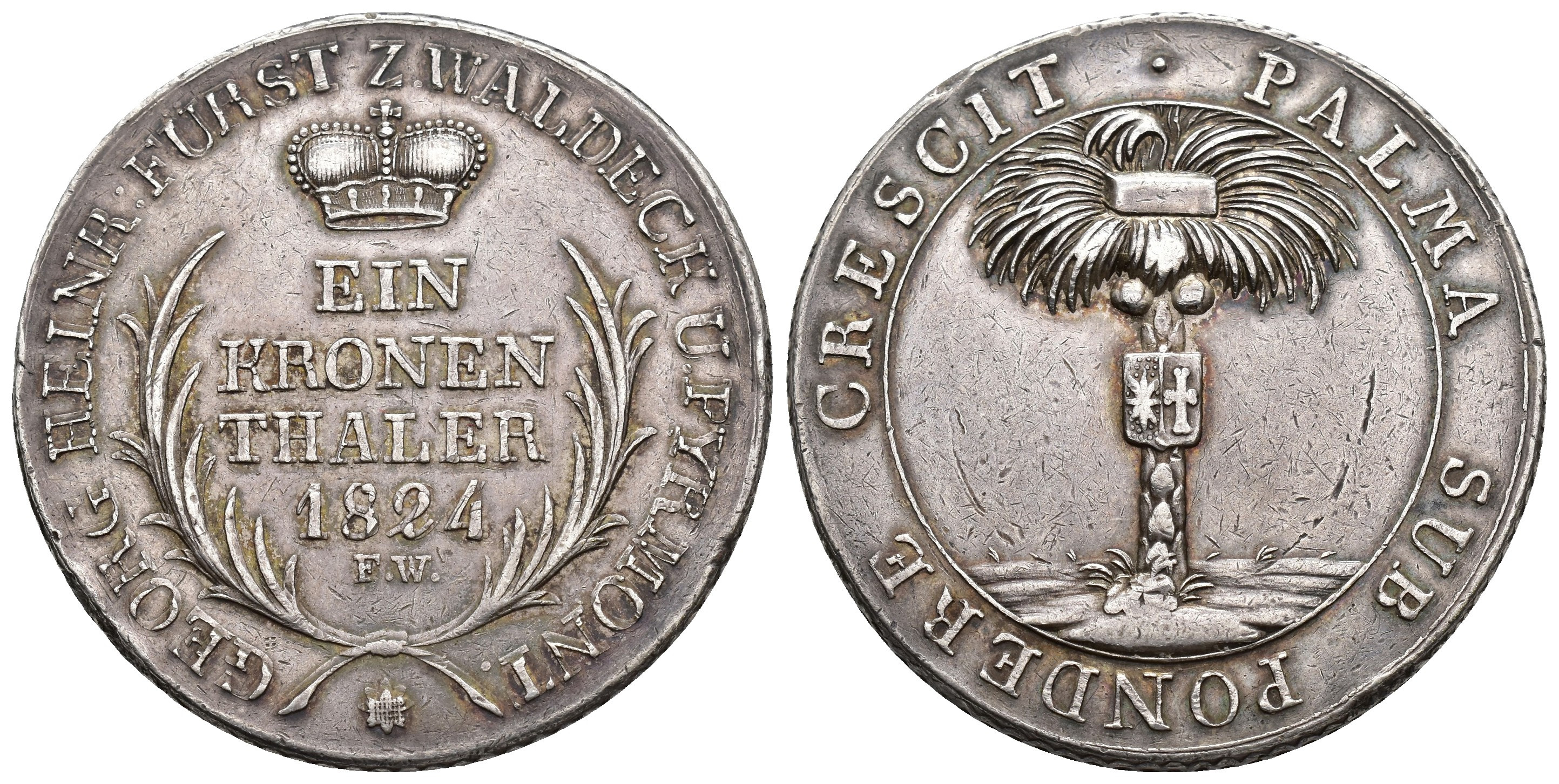 MONEDA EXTRANJERA. ALEMANIA Y ESTADOS ALEMANES. WALDECK. Jorge Enrique. Tálero. 1824. AR 29,09 g. 37,1 mm. Dav.-925. Rayitas. MBC+.