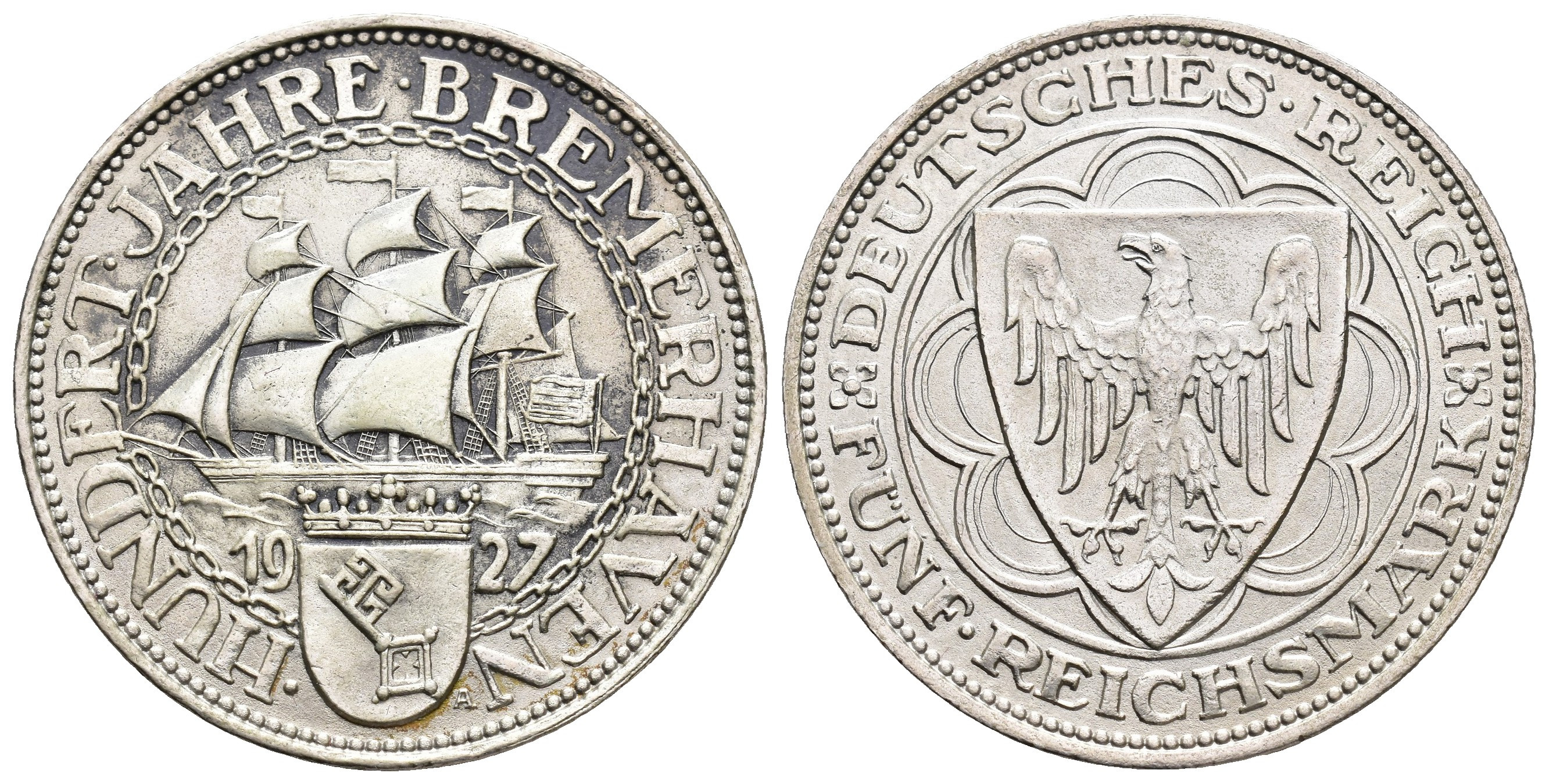 MONEDA EXTRANJERA. ALEMANIA Y ESTADOS ALEMANES. REPÚBLICA DE WEIMAR. 5 marcos. 1927. AR 24,83 g. 36,1 mm. KM-51. EBC-.