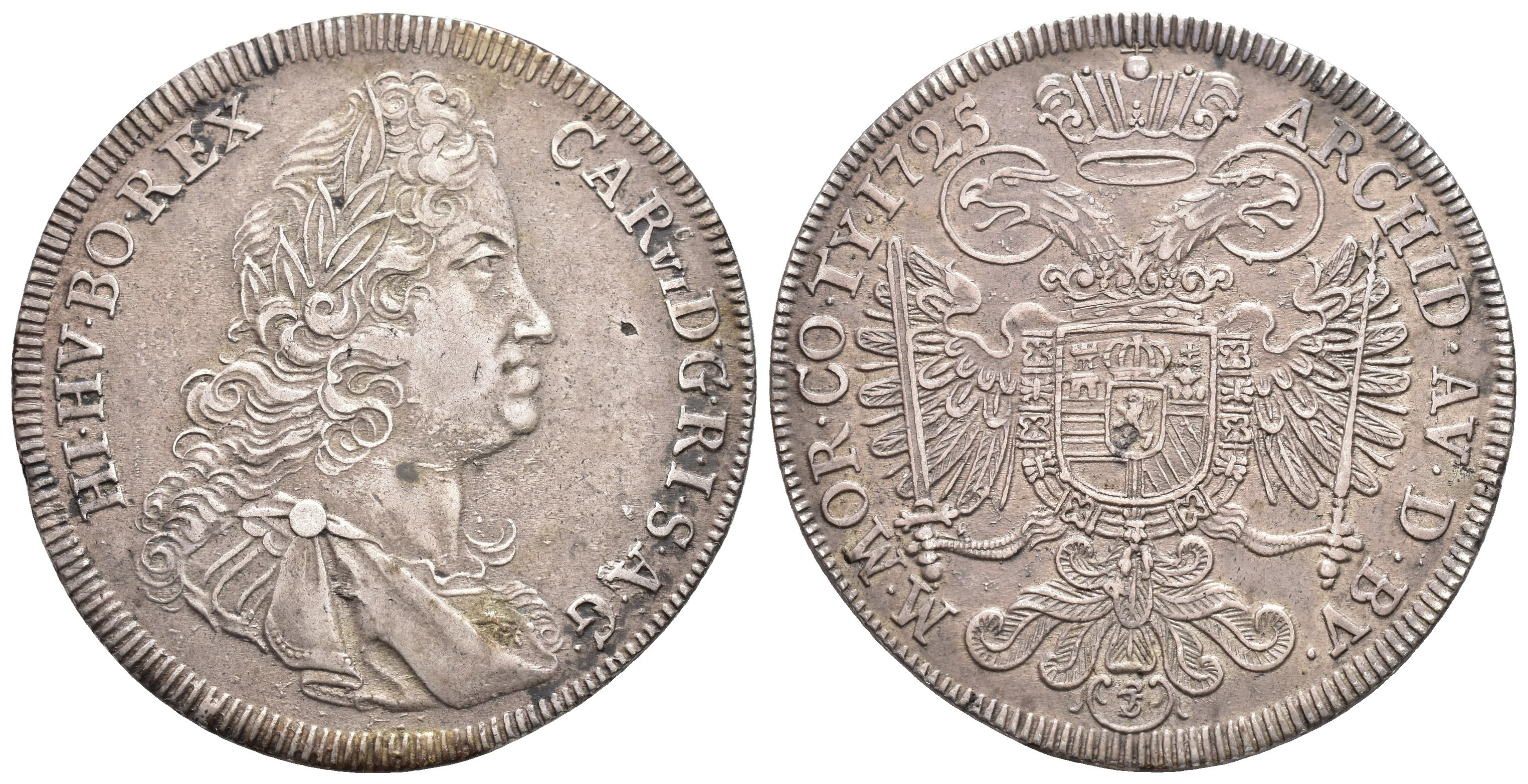 MONEDA EXTRANJERA. AUSTRIA. Carlos VI. Tálero. 1725. Hall. AR 28,69 g. 42,4 mm. Dav.-1054. Marcas. MBC+.