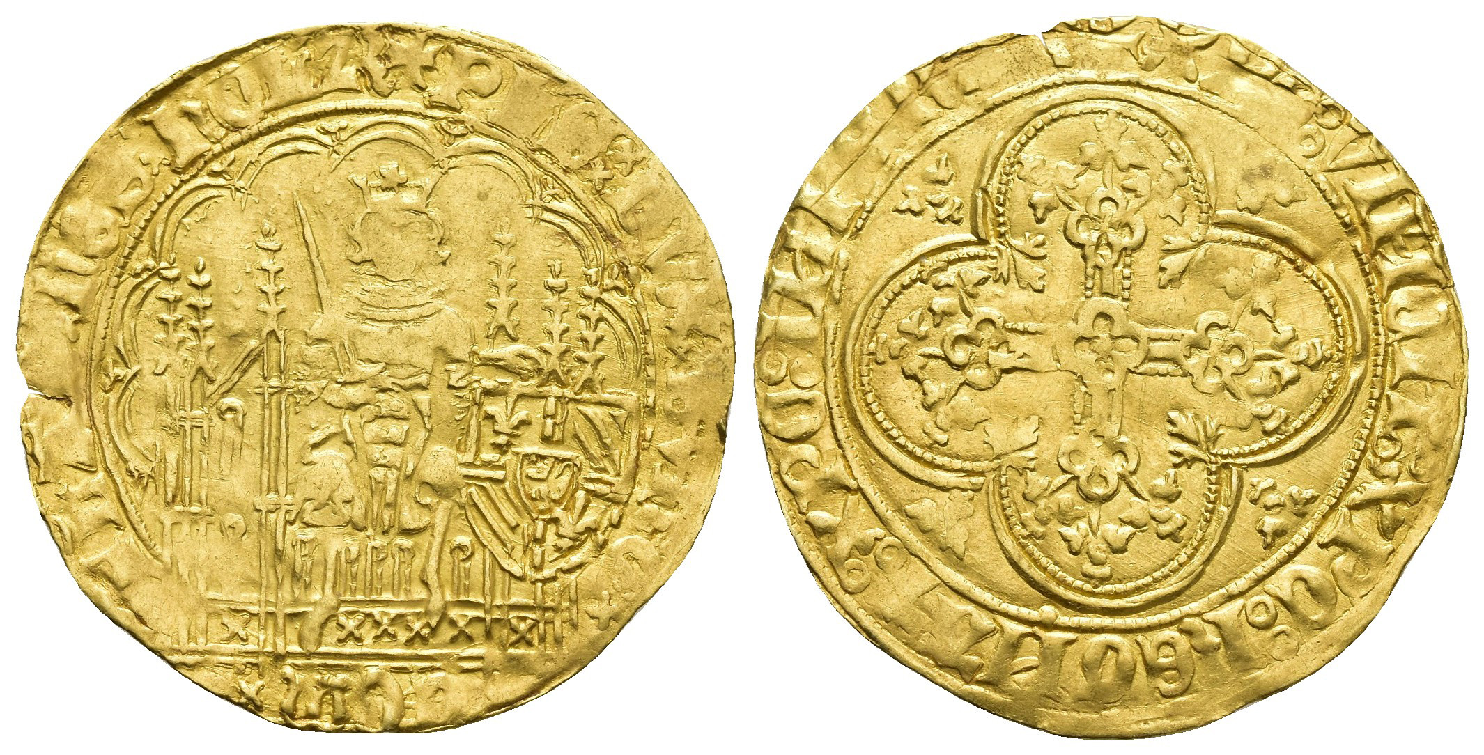 MONEDA EXTRANJERA. BÉLGICA. Felipe el Bueno. Escudo de oro de la silla AU 3,58 g. 28,9 mm. FR-40. Pequeña grieta. MBC-/MBC.