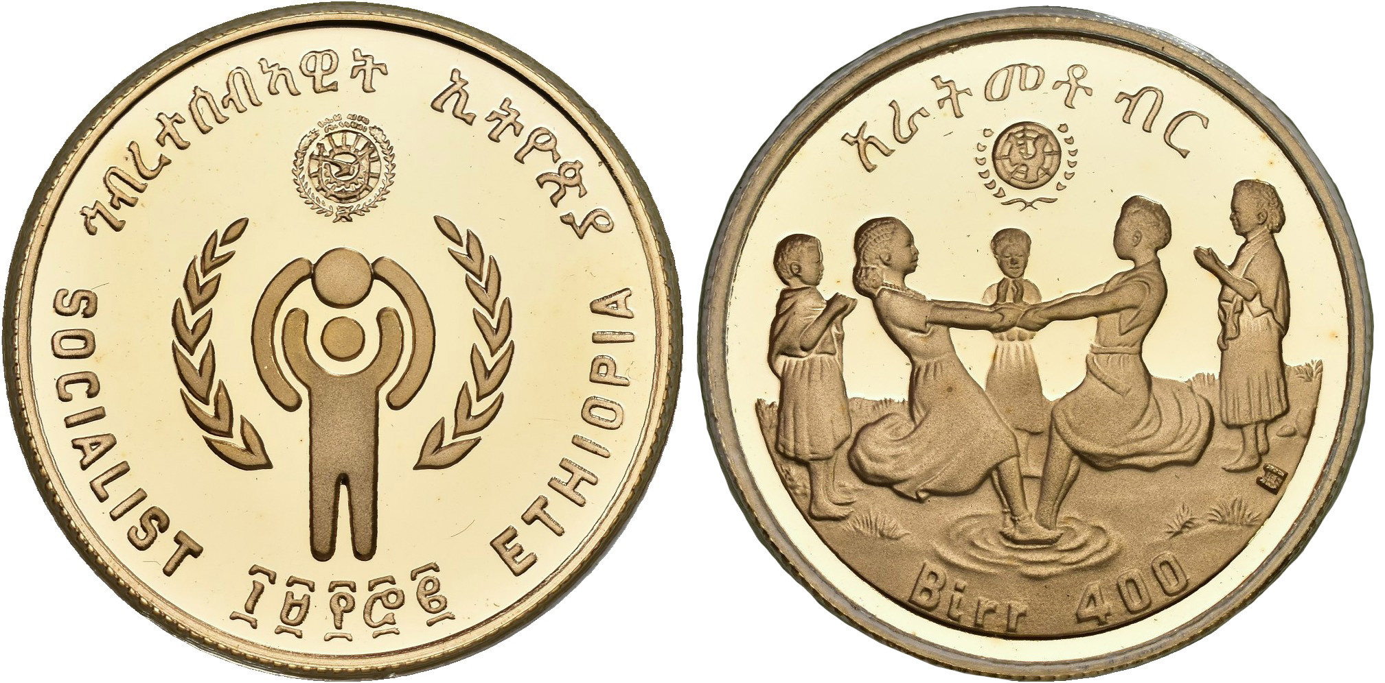 MONEDA EXTRANJERA. ETIOPÍA. 400 birr. 1972. Año Internacional del niño. AU 17,17 g. 28,3 mm. KM-60. Prueba. Emisión de 3387 piezas.