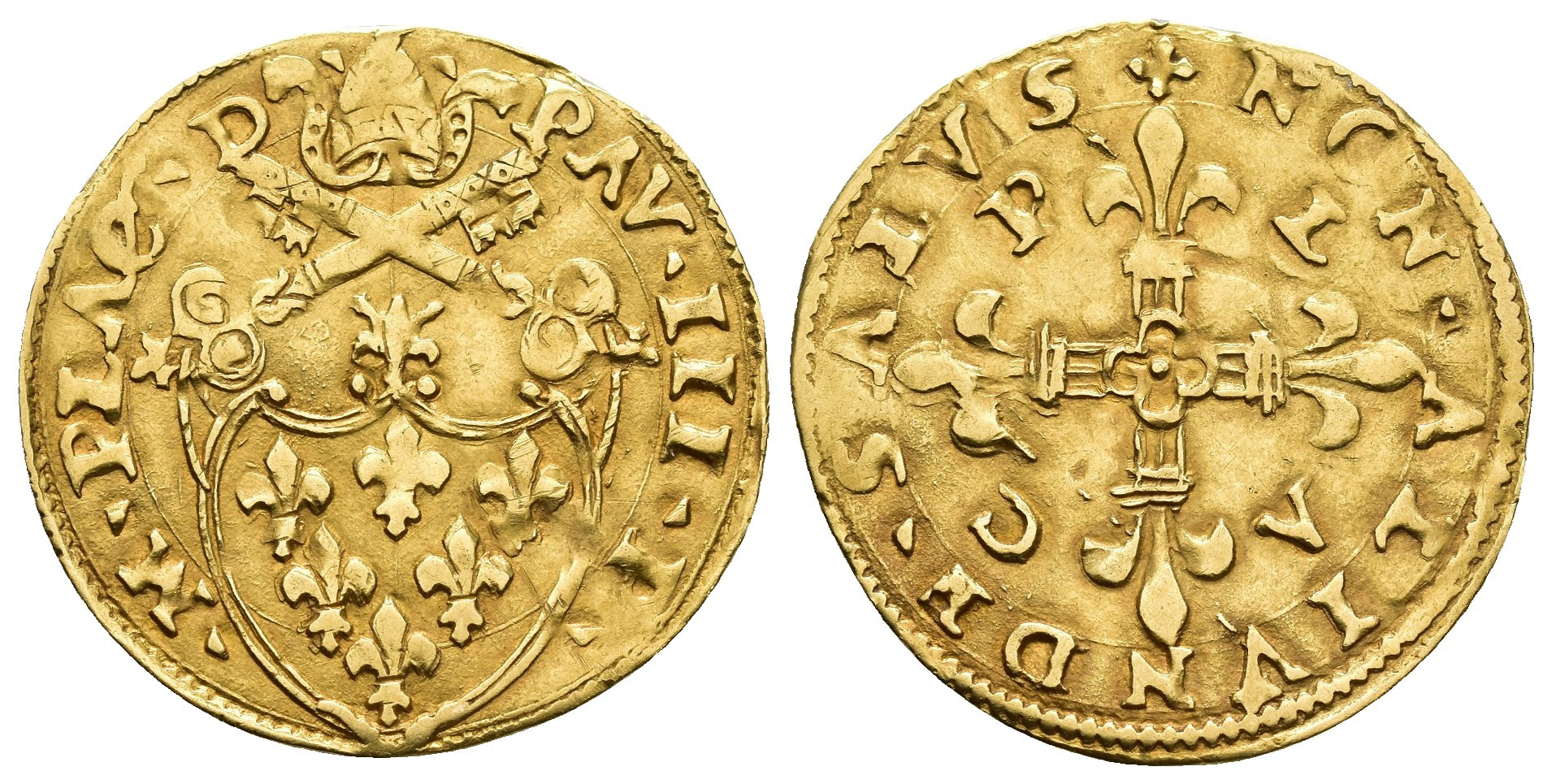 MONEDA EXTRANJERA. ITALIA Y ESTADOS ITALIANOS. ESTADOS PAPALES Y VATICANO. Pablo III. Piacenza. Escudo (1534-1549). AU 3,26 g. 25,9 mm. Muntoni-176. MBC/MBC+.