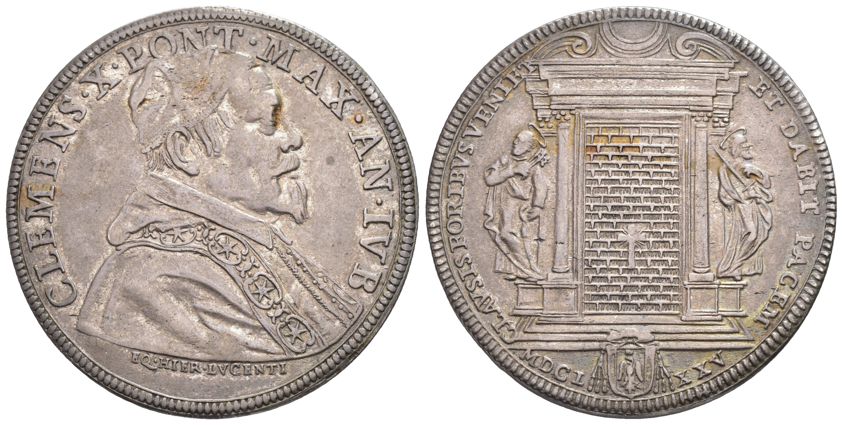 MONEDA EXTRANJERA. ITALIA Y ESTADOS ITALIANOS. ESTADOS PAPALES Y VATICANO. Clemente X. Piastra. 1675. AR 31,97 g. 44,1 mm. KM-369. MBC+/EBC-.
