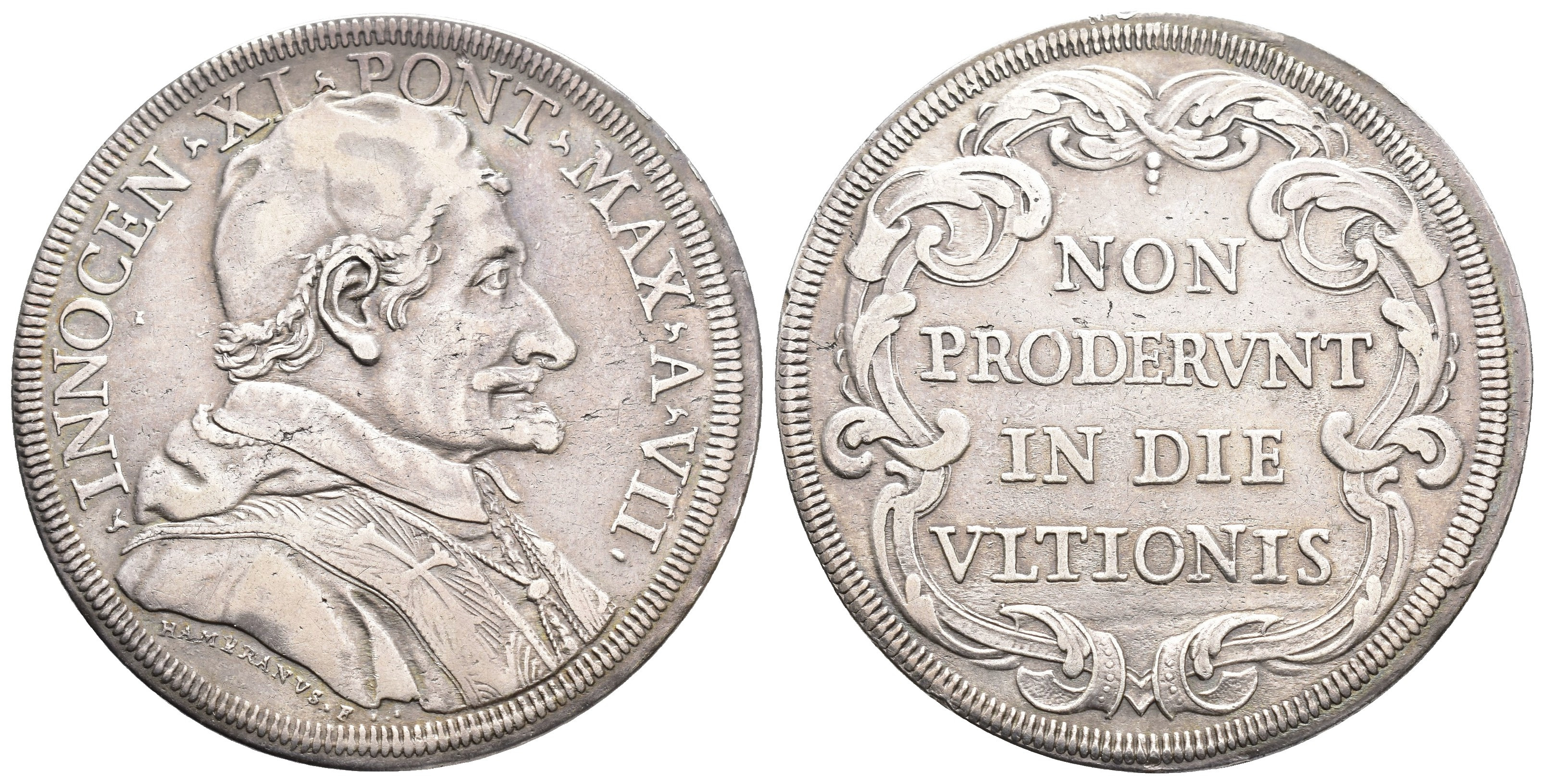 MONEDA EXTRANJERA. ITALIA Y ESTADOS ITALIANOS. ESTADOS PAPALES Y VATICANO. Inocencio XI. Piastra. 1682. AR 31,87 g. 43,9 mm. KM-427. MBC/MBC+.