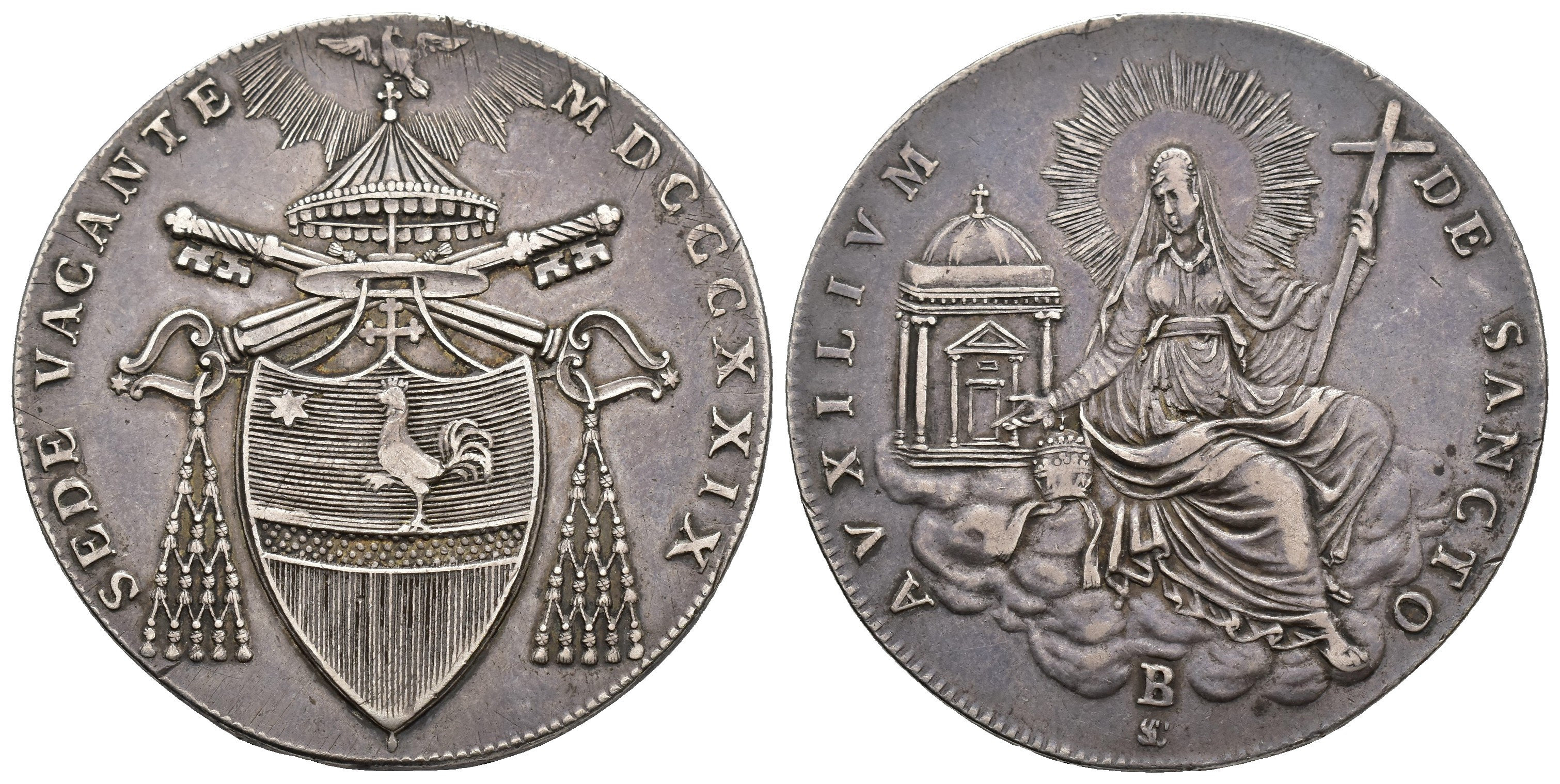 MONEDA EXTRANJERA. ITALIA Y ESTADOS ITALIANOS. ESTADOS PAPALES Y VATICANO. Sede vacante. B. Escudo. 1829. AR 26,31 g. 41,4 mm. KM-1303. MBC+.