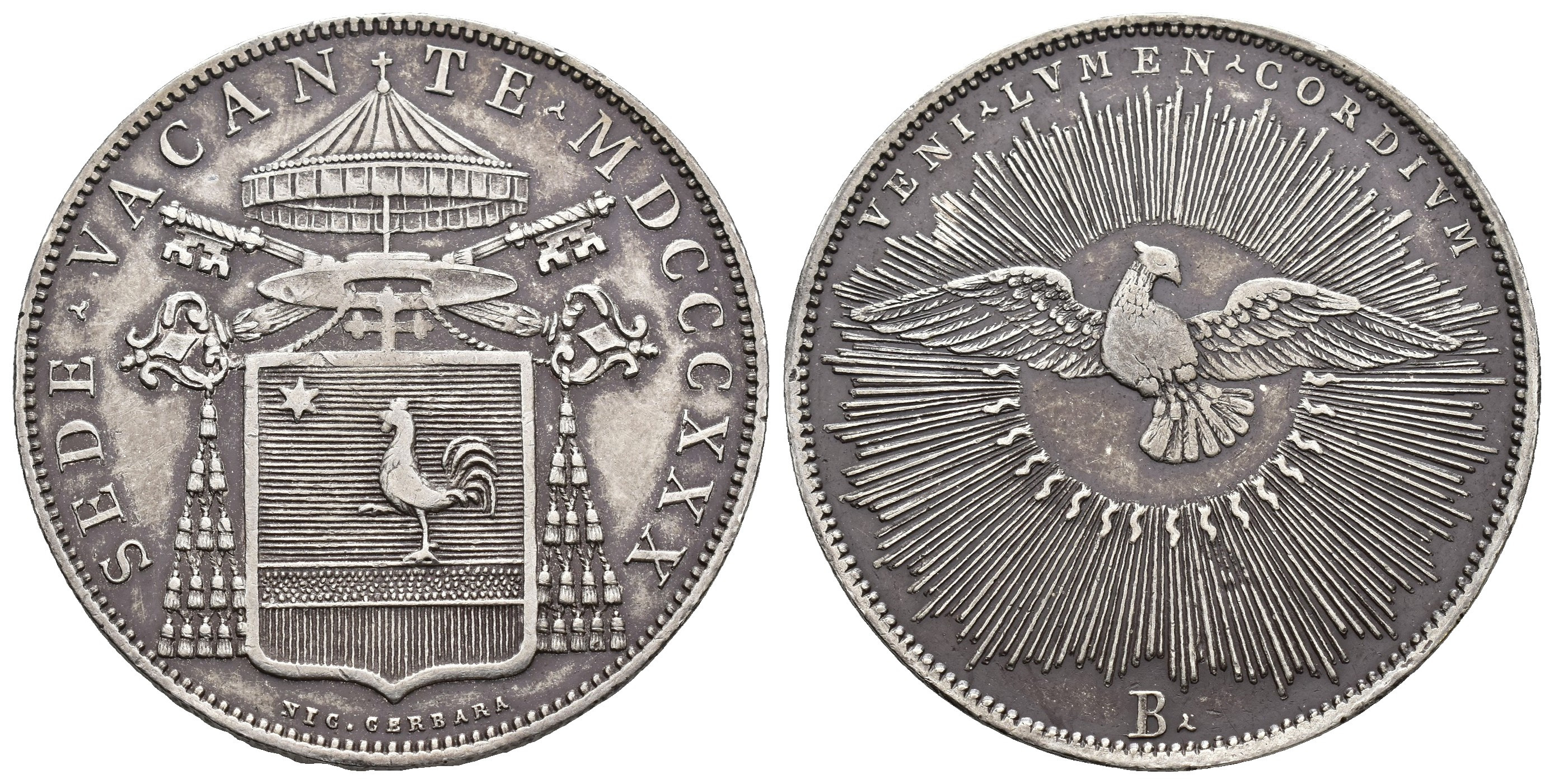 MONEDA EXTRANJERA. ITALIA Y ESTADOS ITALIANOS. ESTADOS PAPALES Y VATICANO. Sede vacante. B. Escudo. 1830. AR 26,42 g. 37,8 mm. KM-1311. MBC+/MBC.