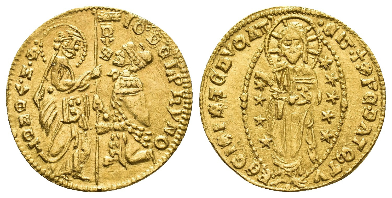 MONEDA EXTRANJERA. ITALIA Y ESTADOS ITALIANOS. Venecia. Giovanni Dolfin. Ducado (1356-1361). AU 3,57 g. 20 mm. Paolucci-1. EBC-.