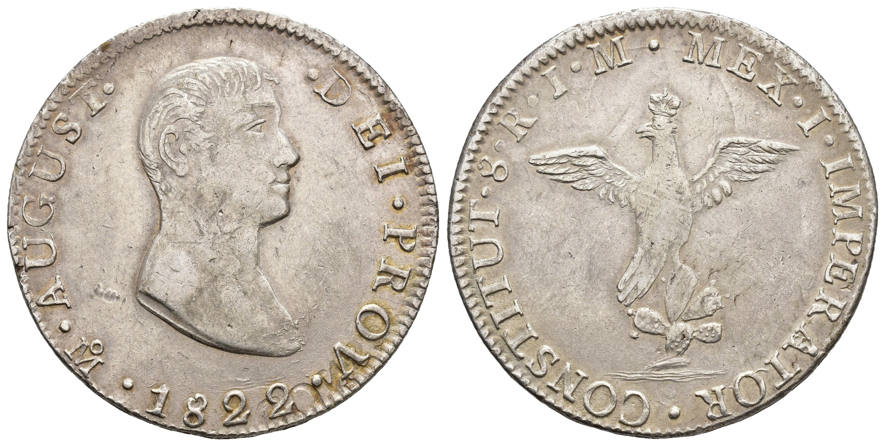 MONEDA EXTRANJERA. MÉXICO. Agustín de Iturbide. México. 8 reales. 1822. JM. AR 27,04 g. 38,8 mm. KM-304. Golpecitos en anv. MBC.