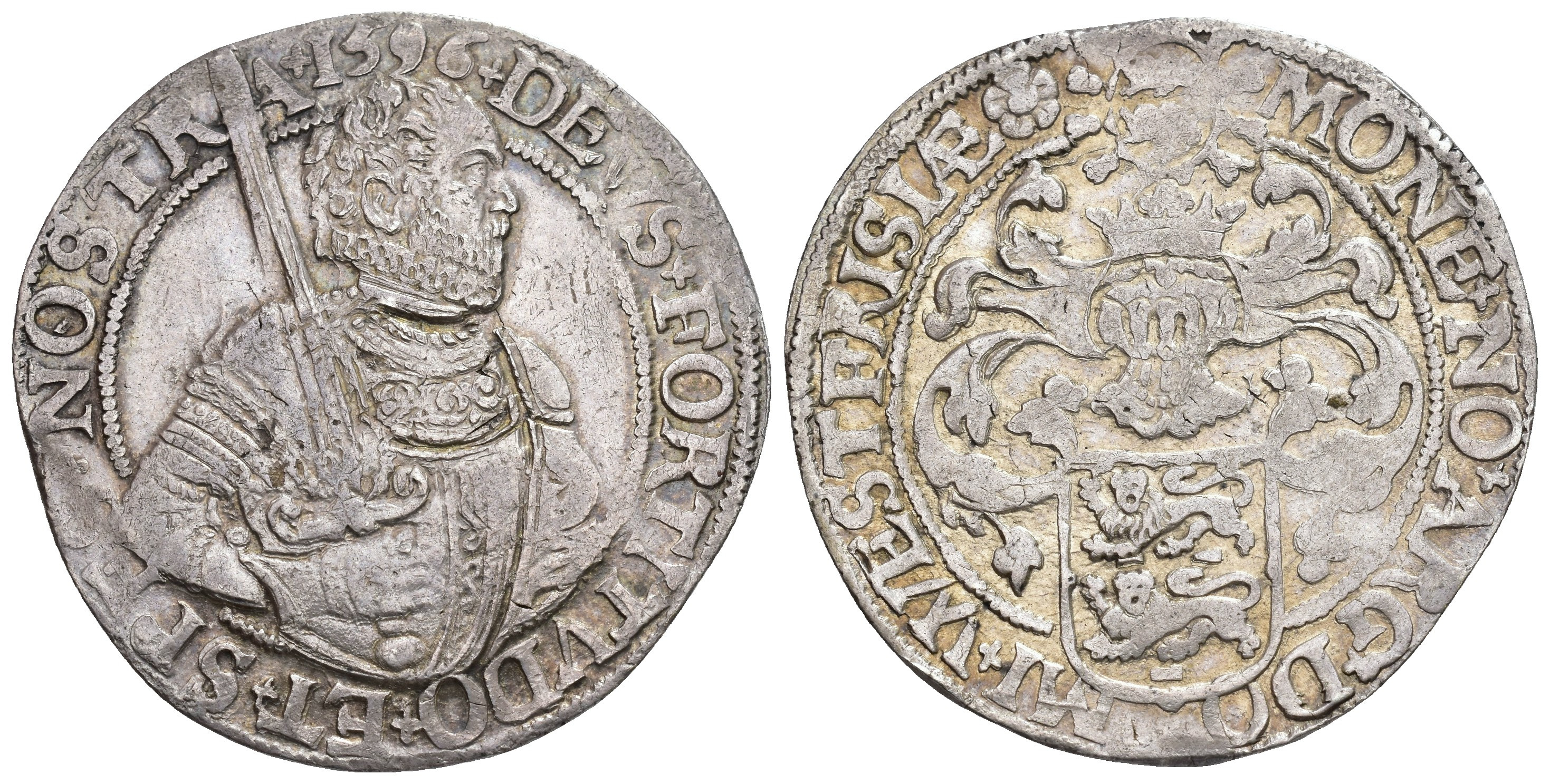 MONEDA EXTRANJERA. PAÍSES BAJOS. Frisia Occidental. Ricksdaaler. 1596. AR 28,95 g. 39,5 mm. Dav.-8865. Pequeñas marcas. MBC+/MBC-.