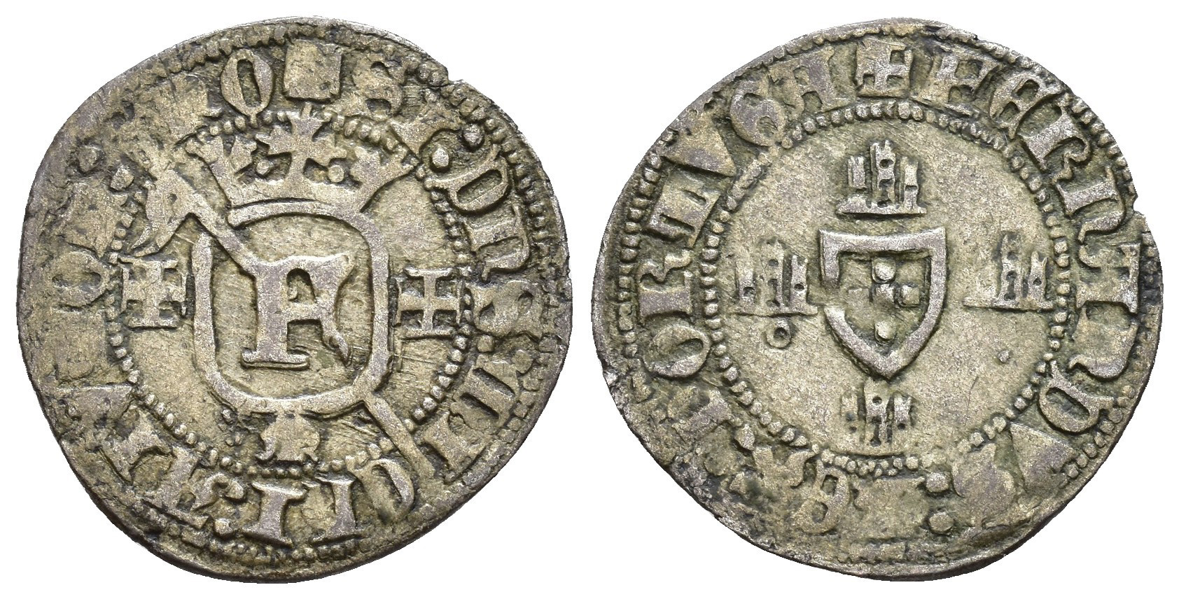 MONEDA EXTRANJERA. PORTUGAL. Fernando I. Miranda. Grave. F acotada por cruces patadas. AR 1,79 g. 23 mm. Go-13.02. MBC. Rara.
