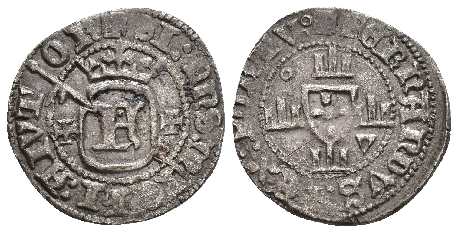 MONEDA EXTRANJERA. PORTUGAL. Fernando I. Valencia de Alcántara. Grave. F acotada por cruces patadas. V en rev. AR 2,03 g. 20,3 mm. Go-16.01. Fina raya en anv. y pequeñas concreciones. MBC+. Rara.