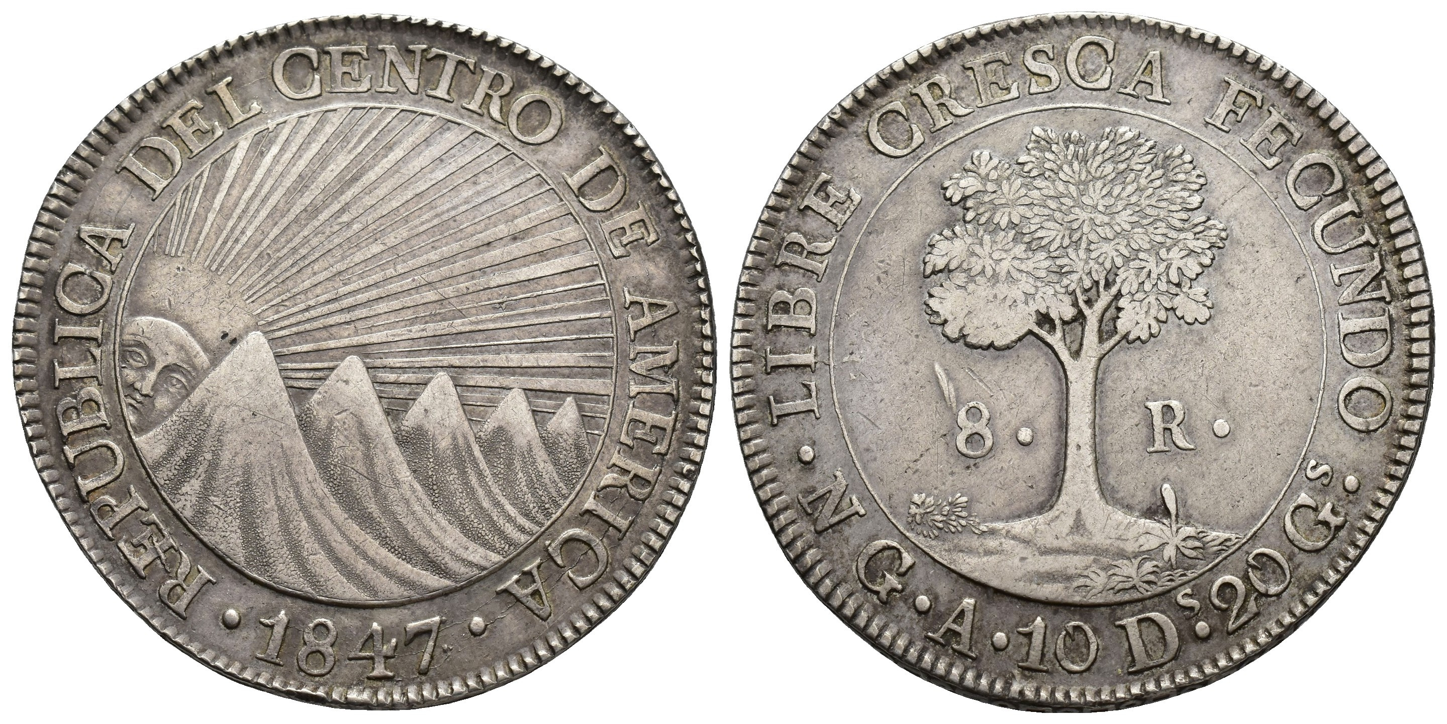 MONEDA EXTRANJERA. REPÚBLICA CENTROAMERICANA. 8 reales. 1847/6. Guatemala. NG A. AR 26,92 g. 38,8 mm. KM-4. Pequeñas marcas. MBC+/MBC.