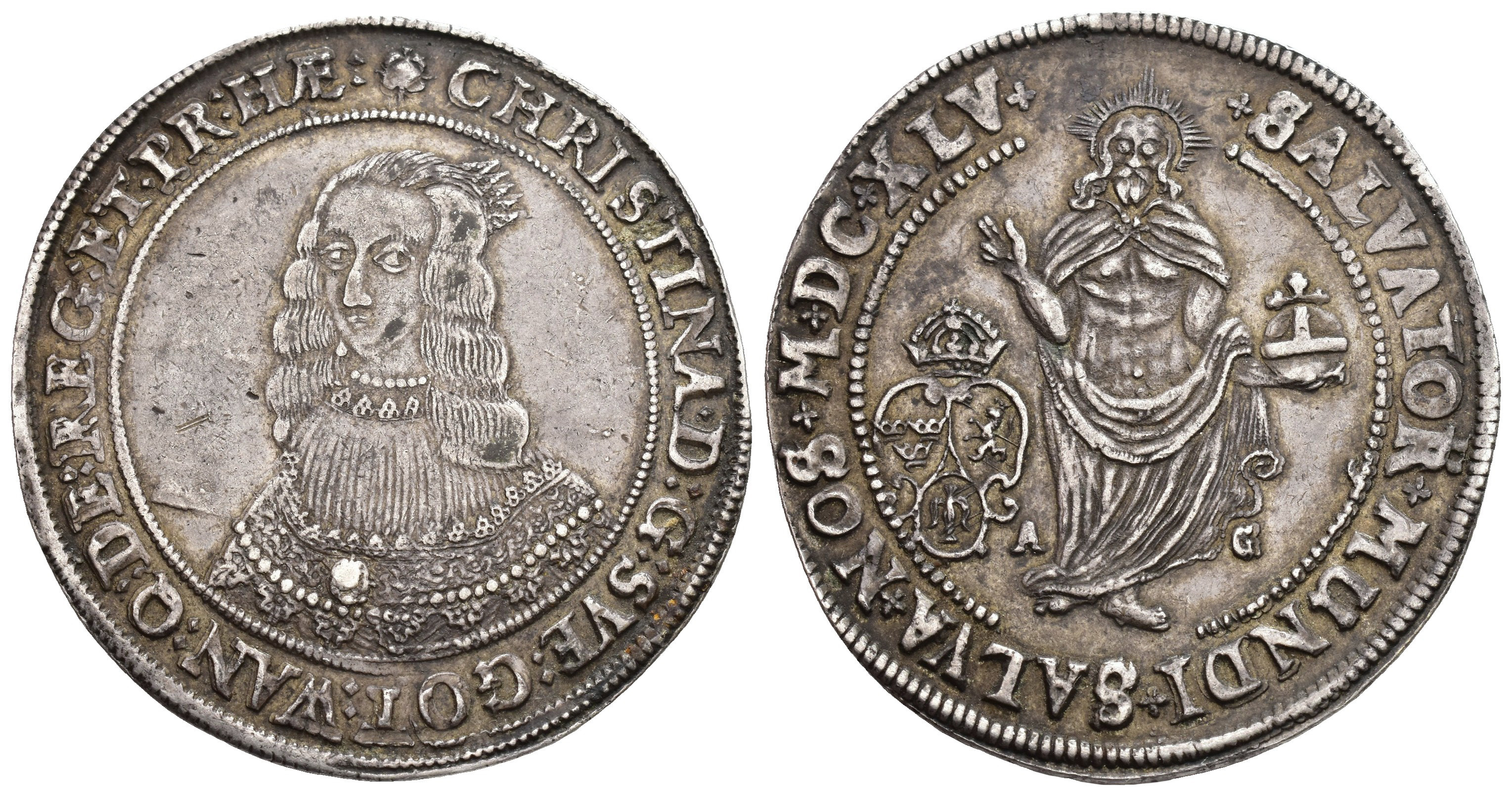 MONEDA EXTRANJERA. SUECIA. Cristina Tálero. 1645. AR 28,6 g. 42,7 mm. KM-187. Pequeñas marcas. MBC.
