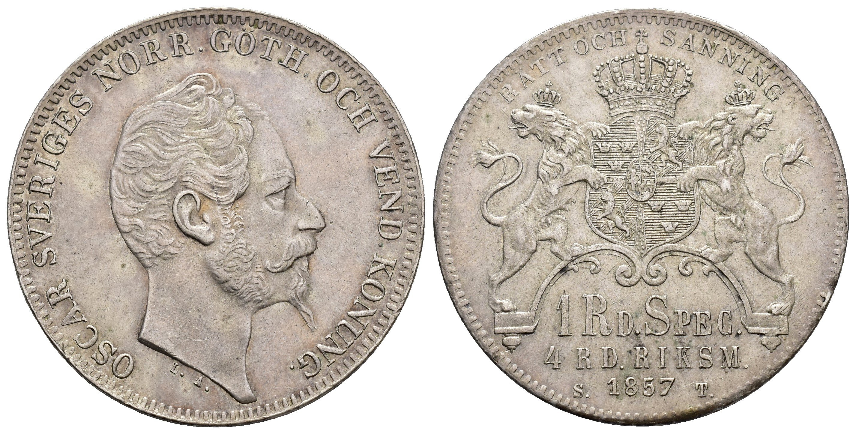 MONEDA EXTRANJERA. SUECIA. Óscar I. Riksdaler. 1857. AR 33,96 g. 38,8 mm. KM-689. EBC-.