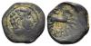 HISPANIA ANTIGUA. ARSAOS. Cuadrante. A/ Cabeza masculina a der. R/ Caballo saltando a der., encima creciente con cruz, debajo ARSAO(S). AE 4,64 g. 17,8 mm. I-152; ACIP-1648. Vanos. Pátina oscura. MBC. Rara.