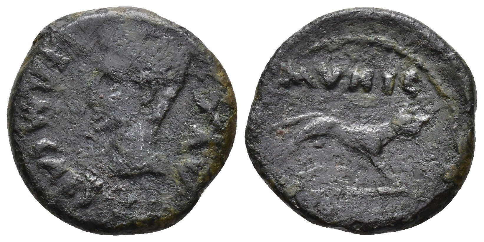 HISPANIA ANTIGUA. ITALICA. Augusto. Semis. A/ Cabeza a izq.; PERM CAES AVG, poco visible. R/ Loba con los gemelos; MVNIC/(ITALIC). AE 6,25 g. 22 mm. I-1586; APRH-62a; ACIP-3330; CC-4049, mismo ejemplar. Pátina oscura. BC+. Escasa.